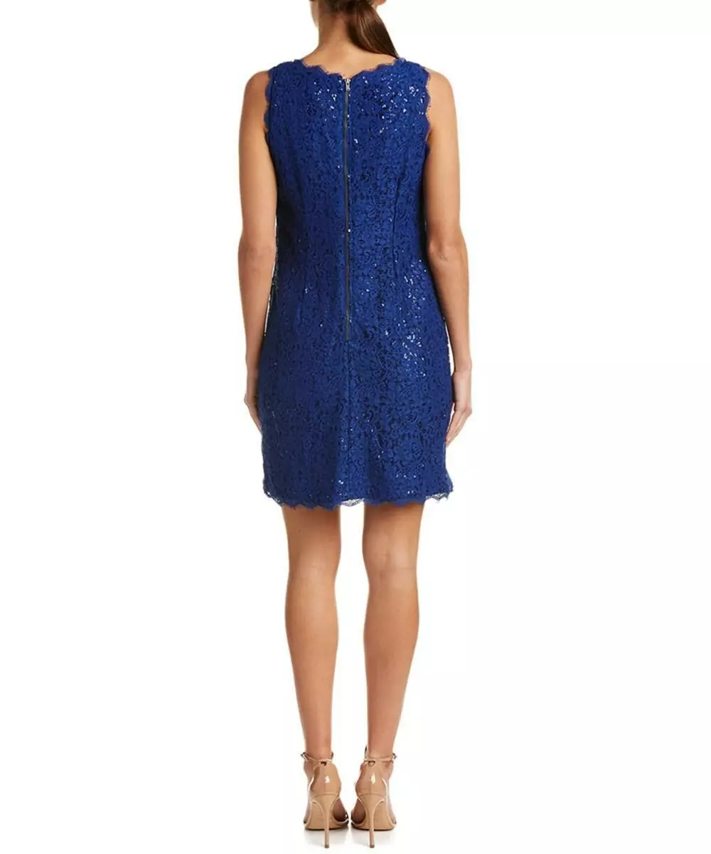 Flaunt your figure in this fantastic sheath dress by Adrianna Papell 41929990. A stunning and figure-enhancing lace sheath dress designed to impress everyone on that special day. Features a bateau neckline in sleeveless bodice with scallop trimming on the neck, armhole and hemline. The fitted silhouette is sure to flaunt that natural feminine figure. This fabulous striking look design by Adrianna Papell is meant to impress.