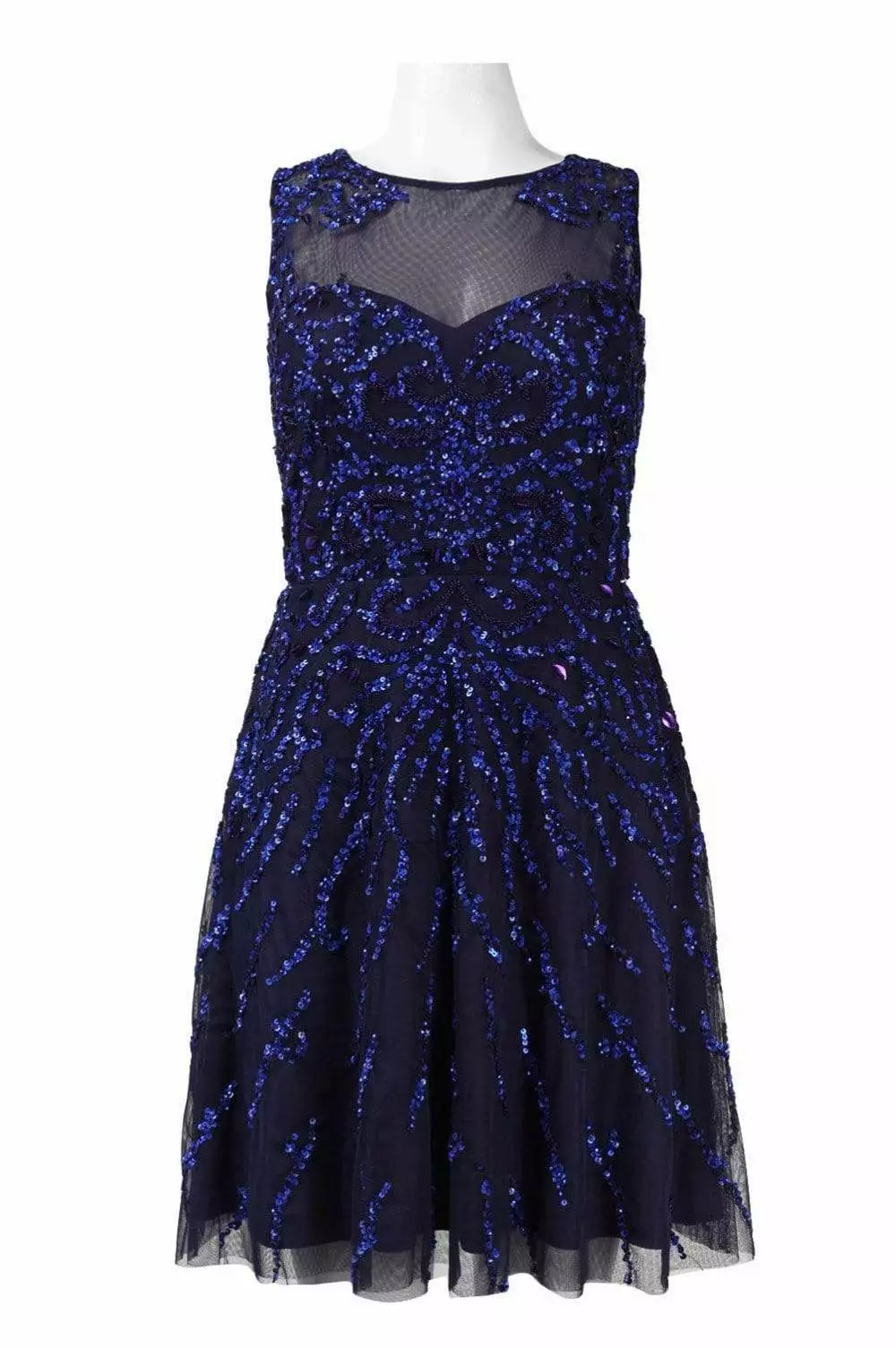 Sprinkle the evening with a touch of style in this Adrianna Papell 54465630 creation. Sprinkled with shimmering sequins on a mesh overlay, this beauty shows an illusion jewel neckline over a sweetheart lining. A keyhole cutout dominates the sheer back. The A-line skirt softly flares into a short hemline. Emanate class and beauty in this Adrianna Papell masterpiece.