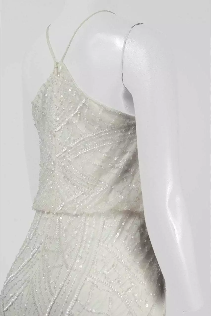 | Details: | Beaded Mesh (100% Polyester) Lining (100% Polyester), Sleeveless, Spaghetti straps, Blouson, Back zipper, Sheath skirt, Sequins |