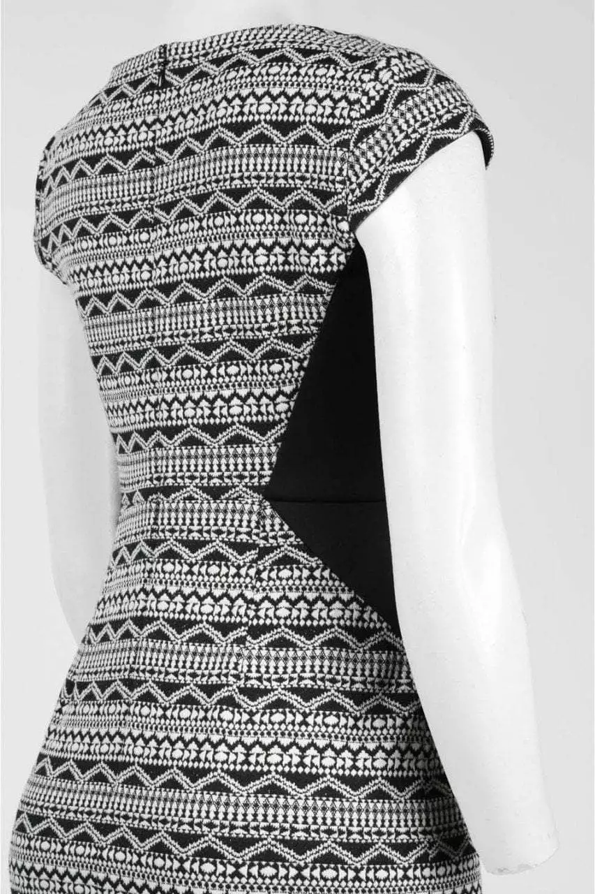 Flatter your spectacular figure while flaunting an exquisitely stylish look in this gorgeous Adrianna Papell AP1D100324 creation. Mesmerizingly rendered with geometric stripe patterns on a soft knit fabric, this lovely piece boasts of a bateau neckline coupled with delicate cap sleeves and pleated shoulder accent. Brilliantly seamed with opaque side panels for that hourglass effect, the sheath skirt gushes down to complete with a short hemline. Showcase your fine assets the refined way in this interestingly printed Adrianna Papell masterpiece