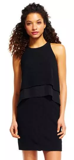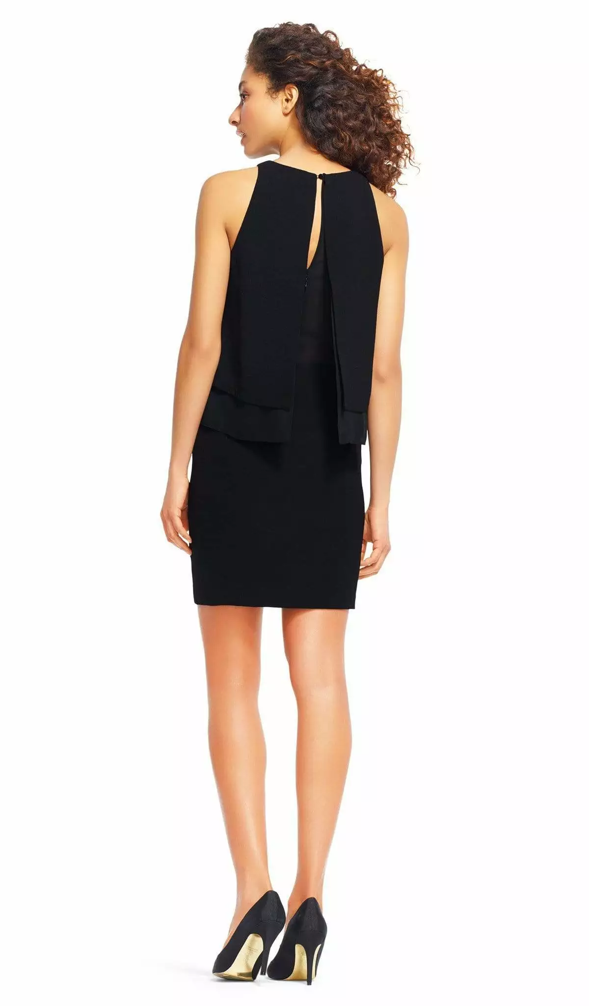Enter the party and do that walk of a regal beauty in Adrianna Papell AP1D100390. Charms in a sleeveless, halter neckline with a pop over detail on its bodice. Made of crepe fabric, the back has a keyhole and zipper closure while the skirt is styled with a fitted silhouette and runs at mid-thigh hem. Look lovely in this chic dress from Adrianna Papell.