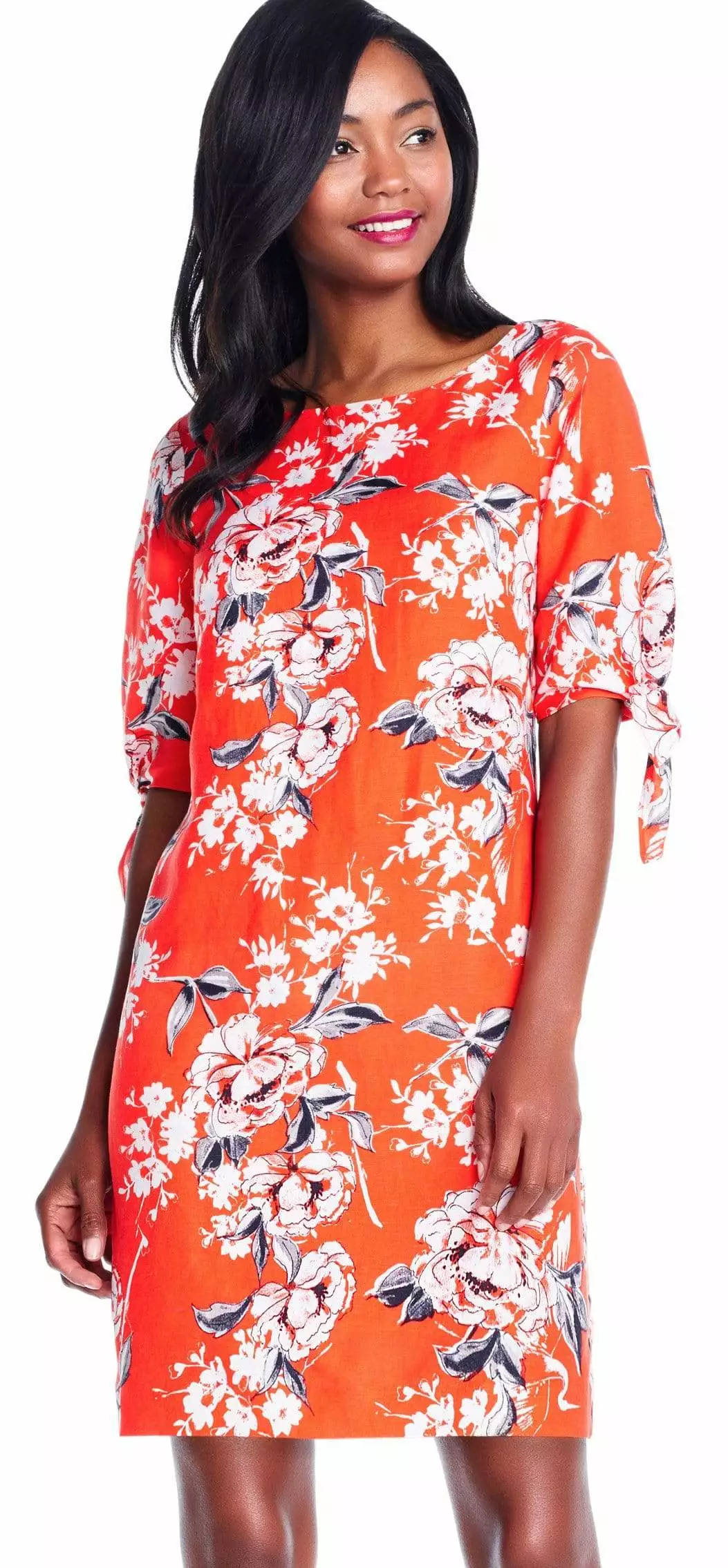 Appear youthful in a dynamic dress from Adrianna Papell AP1D102267. Beautifully designed in floral print, this dress features a fitted bodice with a jewel neckline and half sleeves accented with tie detail. The skirt boasts a sheath silhouette that cascades to the mid-thighs as the full back is secured with a zipper closure detail. This simple yet elegant Adrianna Papell piece would be a perfect social dress.
