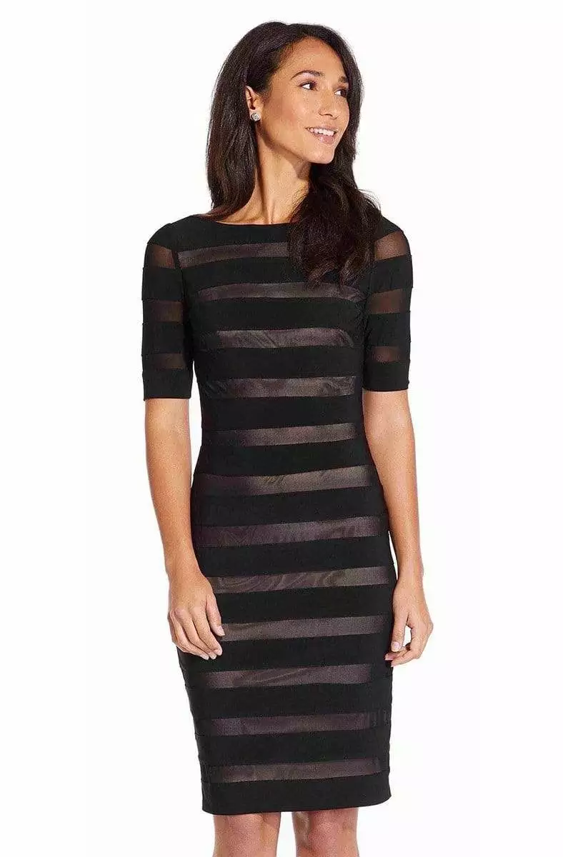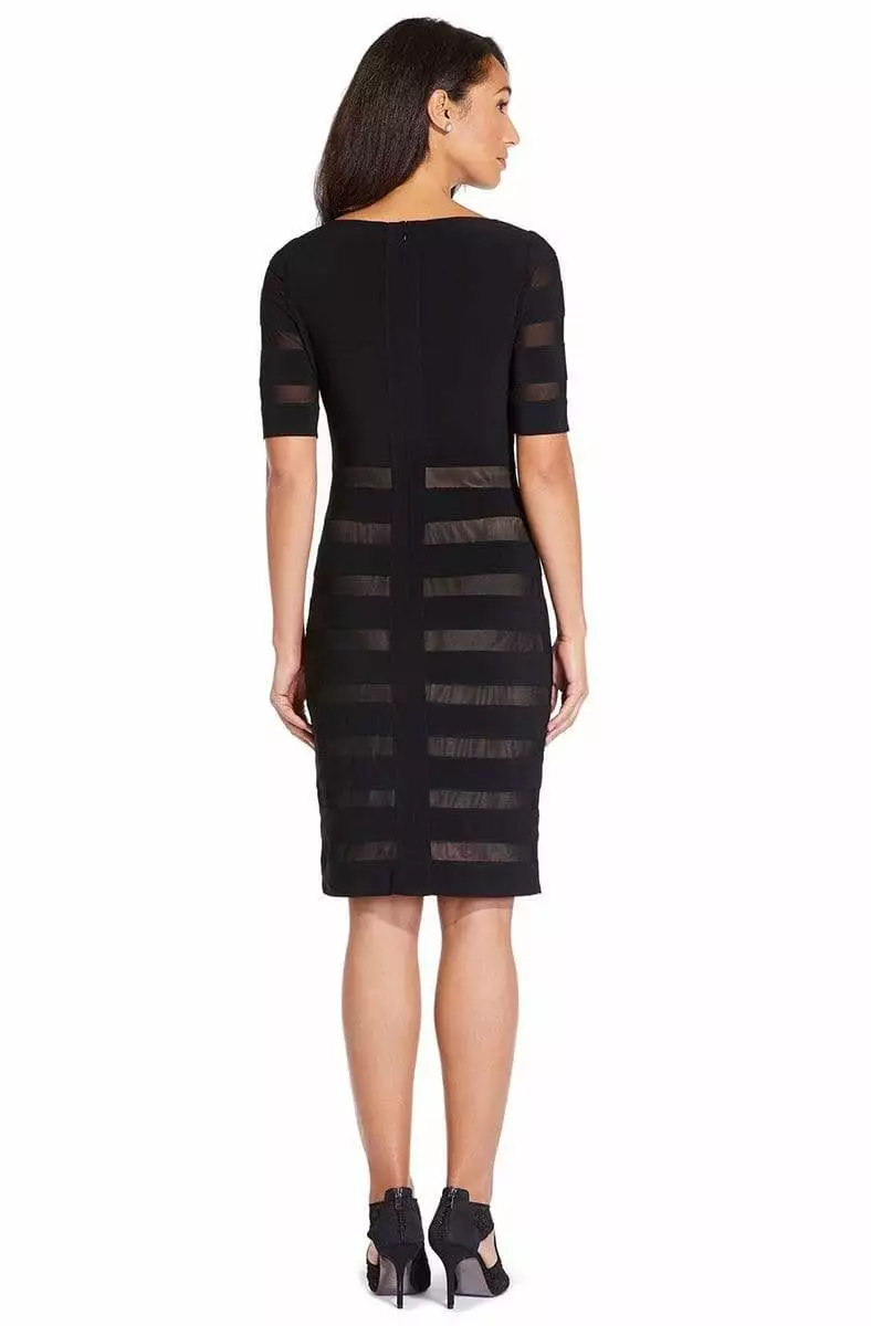 Wow the crowd as you enter the room in this figure-flattering dress by Adrianna Papell AP1D103321. This jersey dress features a bateau neckline with quarter length sleeves. The dress has a fitted bodice and flourishes a mid-thigh sheath skirt. This Adrianna Papell style is a sure standout on your next evening social event.