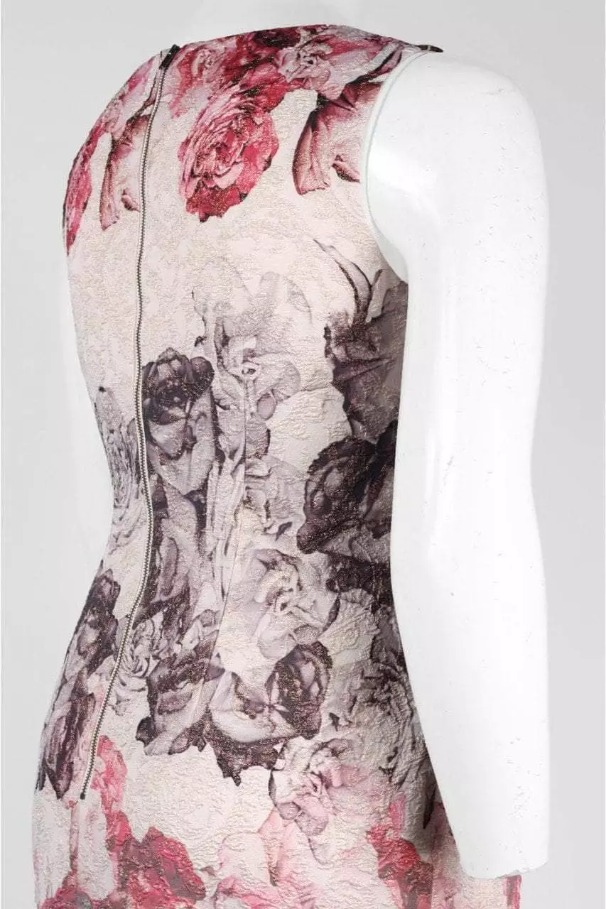 Embody a fashion siren with exquisite taste and upscale style in this beautiful Adrianna Papell AP1E200680 creation. Stunningly crafted in a metallic matelass?????? fabric with vintage rosebud prints, this tasteful piece showcases a blend of jewel neckline and a fullback on a seam-sculpted sleeveless bodice. Conforming along ever contour of the female form, the sheath skirt glides down to complete at a knee length hemline. Captivate your adoring public with your penchant for the sophisticated in this gorgeous Adrianna Papell masterpiece.