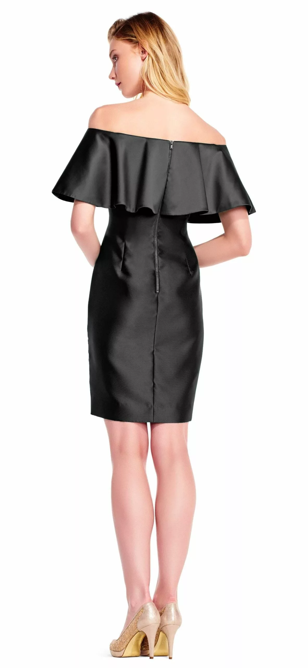Dress to impress with this look from Adrianna Papell AP1E201683. This charming dress fashions an off the shoulder neckline with fitted bodice accented with seams and back zipper closure. The skirt has a fitted silhouette and runs at mid-thigh hem. Wear this Adrianna Papell dress for a sensational effect that will wow the crowd.
