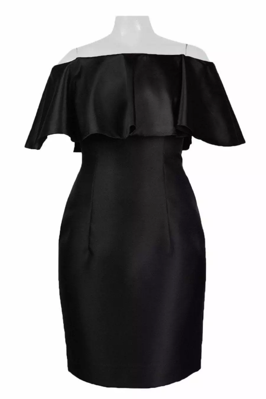| Details: | Mikado (100% Polyester) Lining (100% Acetate), Off-shoulder sleeves, Fitted bodice, Sheath skirt, Back zipper, Visible seams |