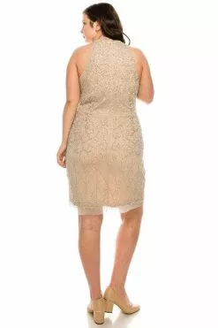 | Details: | Beaded Neckline, Fitted, Cold Shoulder Cutout, Princess Seams, Softly Pleated Skirt, Full Length, Scoop Back, Back Zipper Closure |