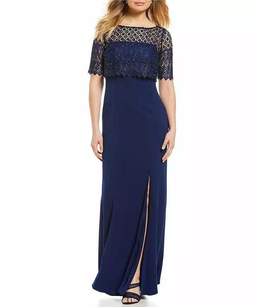 Elegant and alluring, this sophisticated Adrianna Papell AP1E203288 dress is ready to shine at any event. Flickering beads dust an ornate guipure lace popover framed with a bateau neckline and short sleeves. A sharp slit flashes at the sheath skirt, creating a demure yet bold gown of smooth crepe. A center zipper closure secures the full back. This dress by Adrianna Papell is perfect for a girl who wants the standout style and flawless fit.