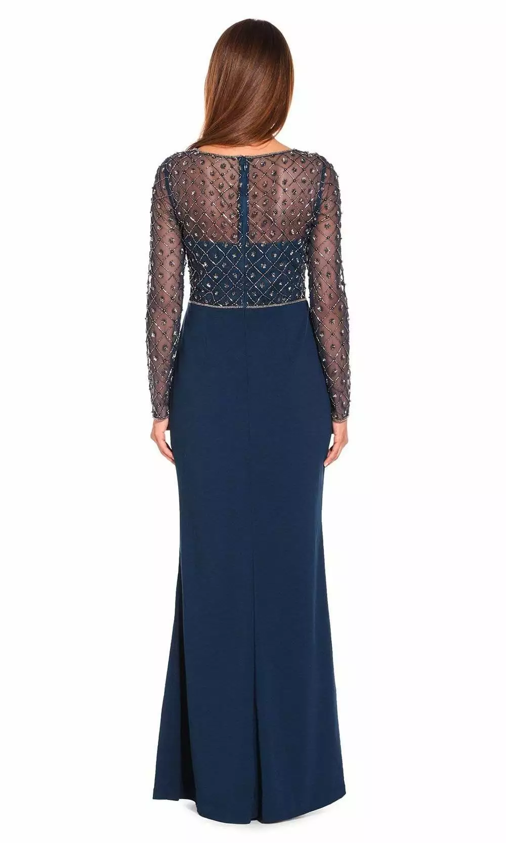 | Details: | Bead and Sequin Embellishments, Sheer Long Sleeves, Fitted, Full Length, Full Back, Back Zipper Closure |