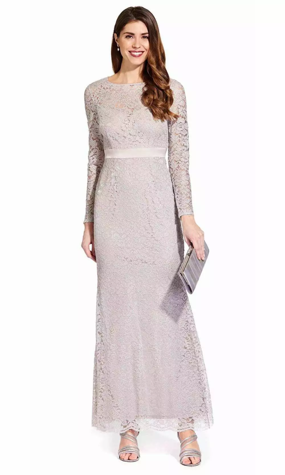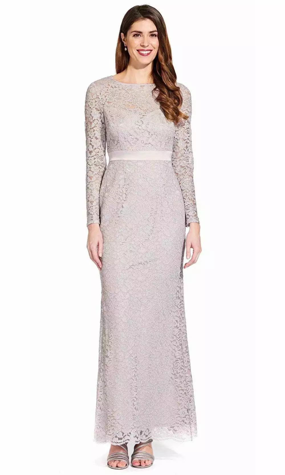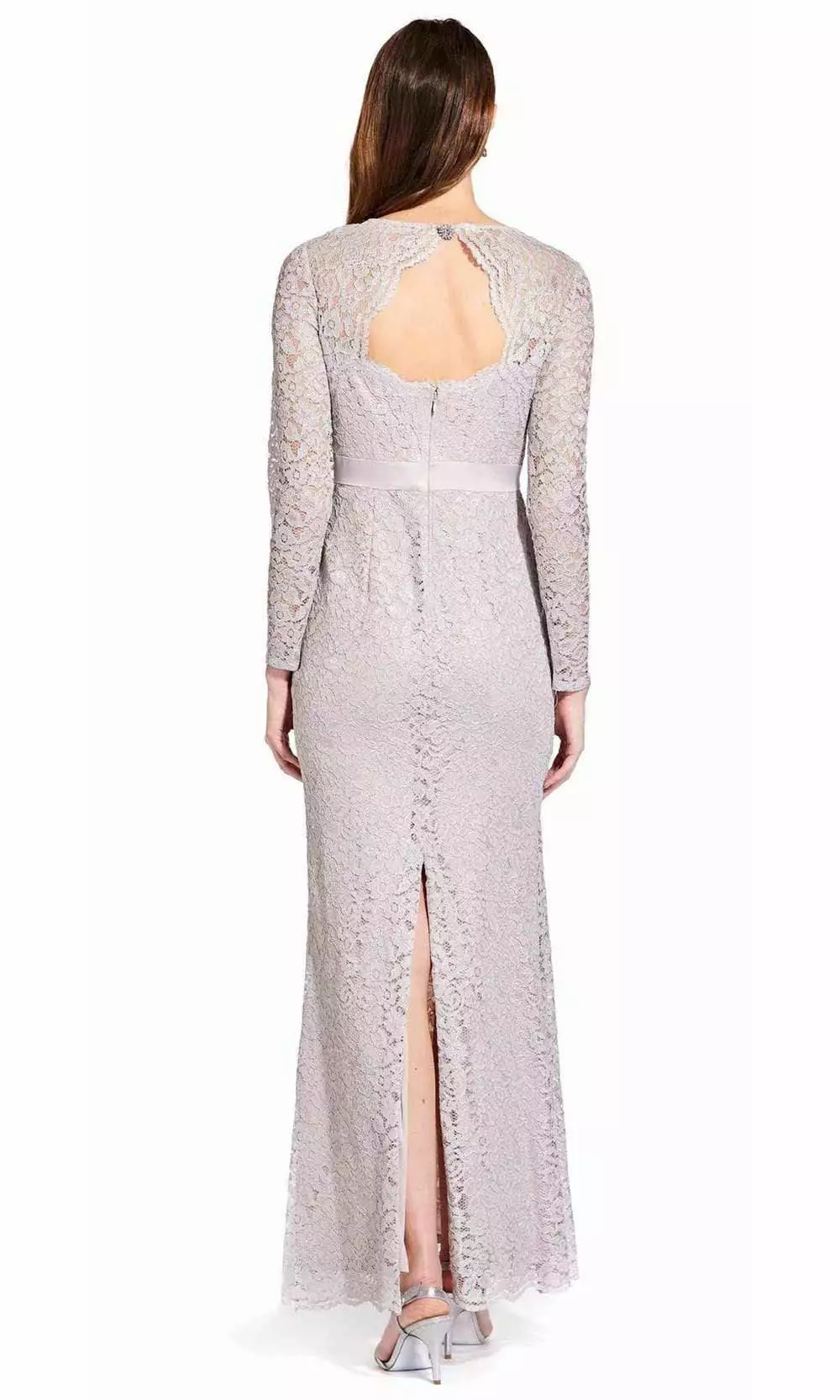 Be strikingly gorgeous in Adrianna Papell AP1E205128. This graceful dress features a bateau neckline with long sleeves. Designed in embellished lace, the dress has a flattering bodice and shows off a back keyhole. The skirt forms a sheath silhouette and is styled with a center back slit. This Adrianna Papell dress is sure to make you the darling of the party!