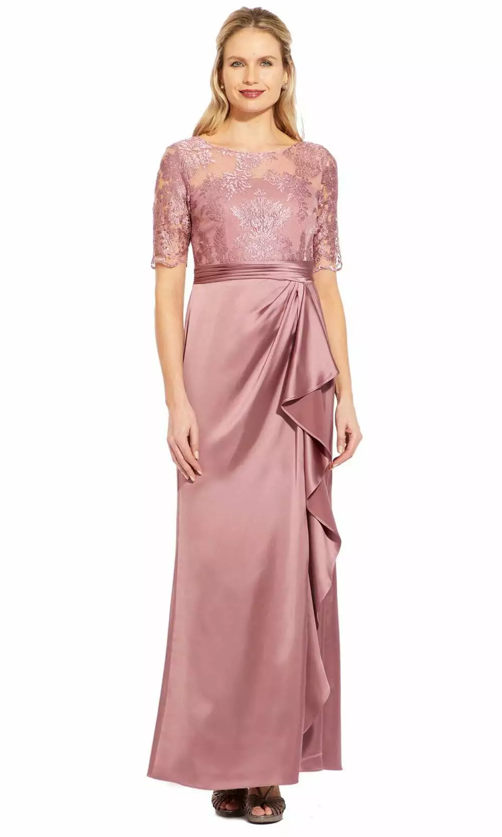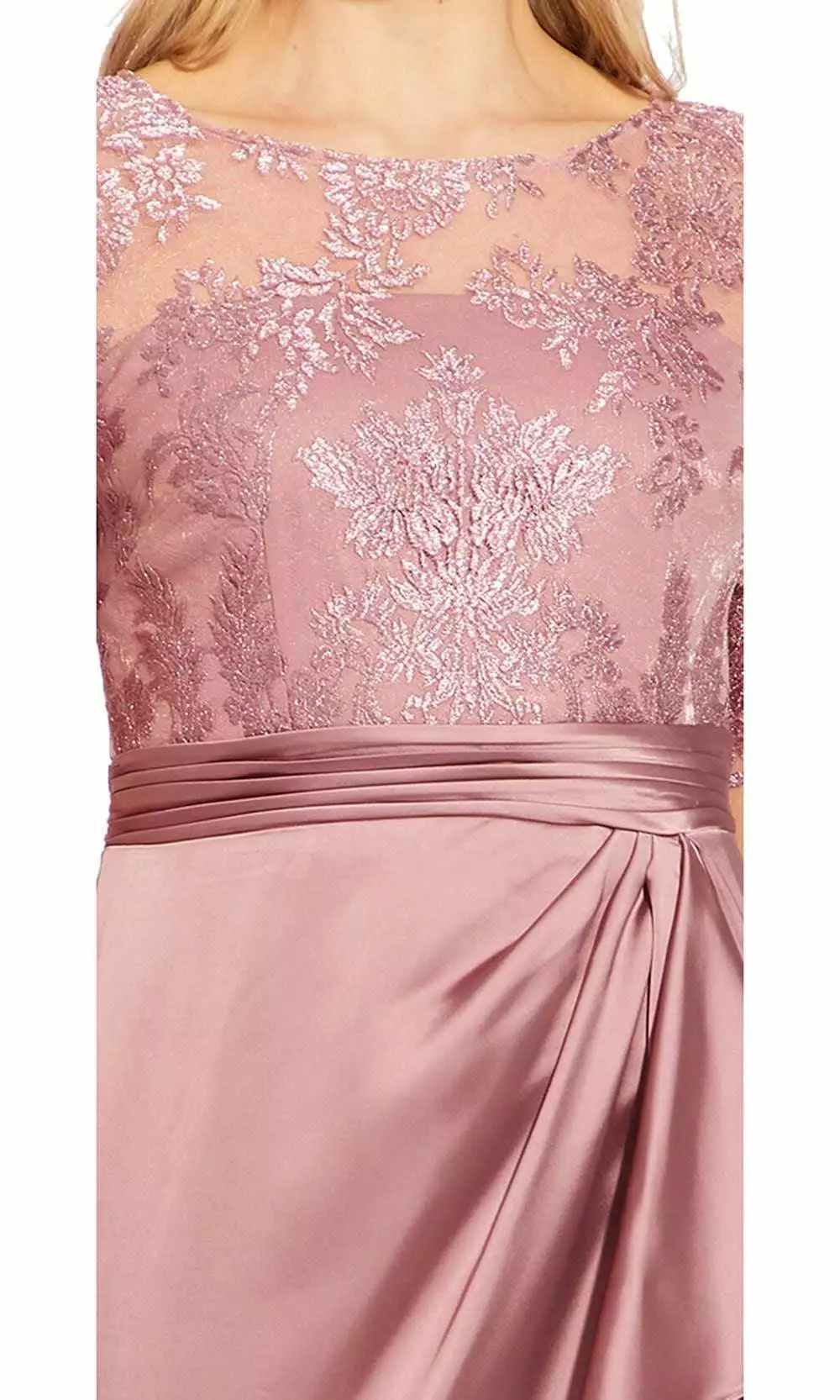 Capture that striking presence and get everyones attention in Adrianna Papell AP1E205141. Fashions a bateau neckline with bodice and sleeves designed with embroidery. The waist is wrapped in a pleated band and flourishes a satin skirt with a flutter side and a slit. Charm everyone from all angles as you shine all night long in this Adrianna Papell masterpiece.