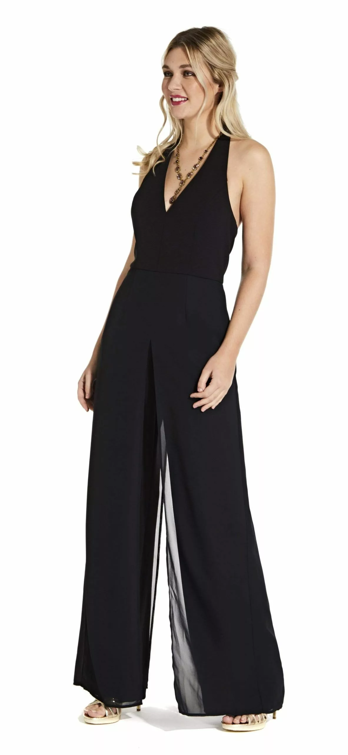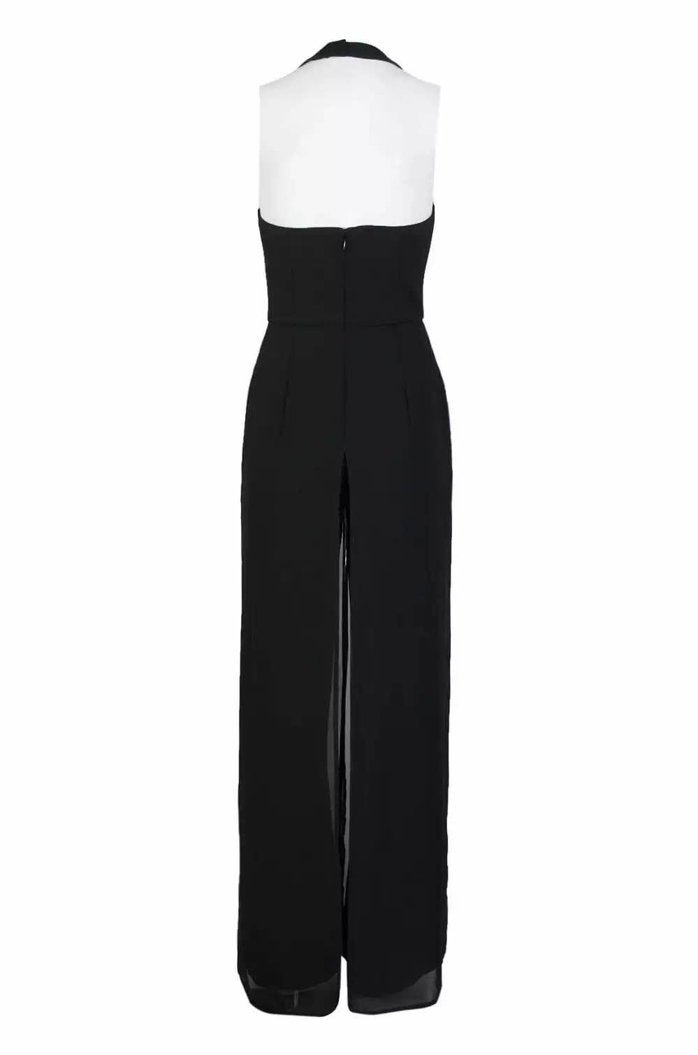 | Details: | Sleeveless, Crepe, Mid-open back, Fitted bodice, Loose leg pants, Back zipper |