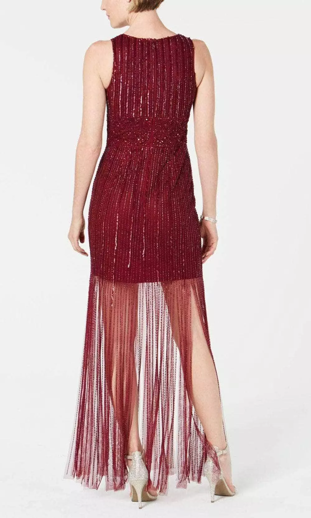 This dress is stunning in beaded mesh fabric and includes a sleeveless V-neckline sitting at the empire waist, with a wide waistband that extends to your natural waist to further define your curves. Long fringes that cascade down from the short hem to the full-length emphasize this dress, which transports you to the party. Couture Candy is committed to provide the very best when it comes to dresses for every occasion, and we are delighted to have Adrianna Papell on our side to aid us in delivering exquisite dresses for various occasions that are sure to make heads turn. Model is wearing Ruby color.