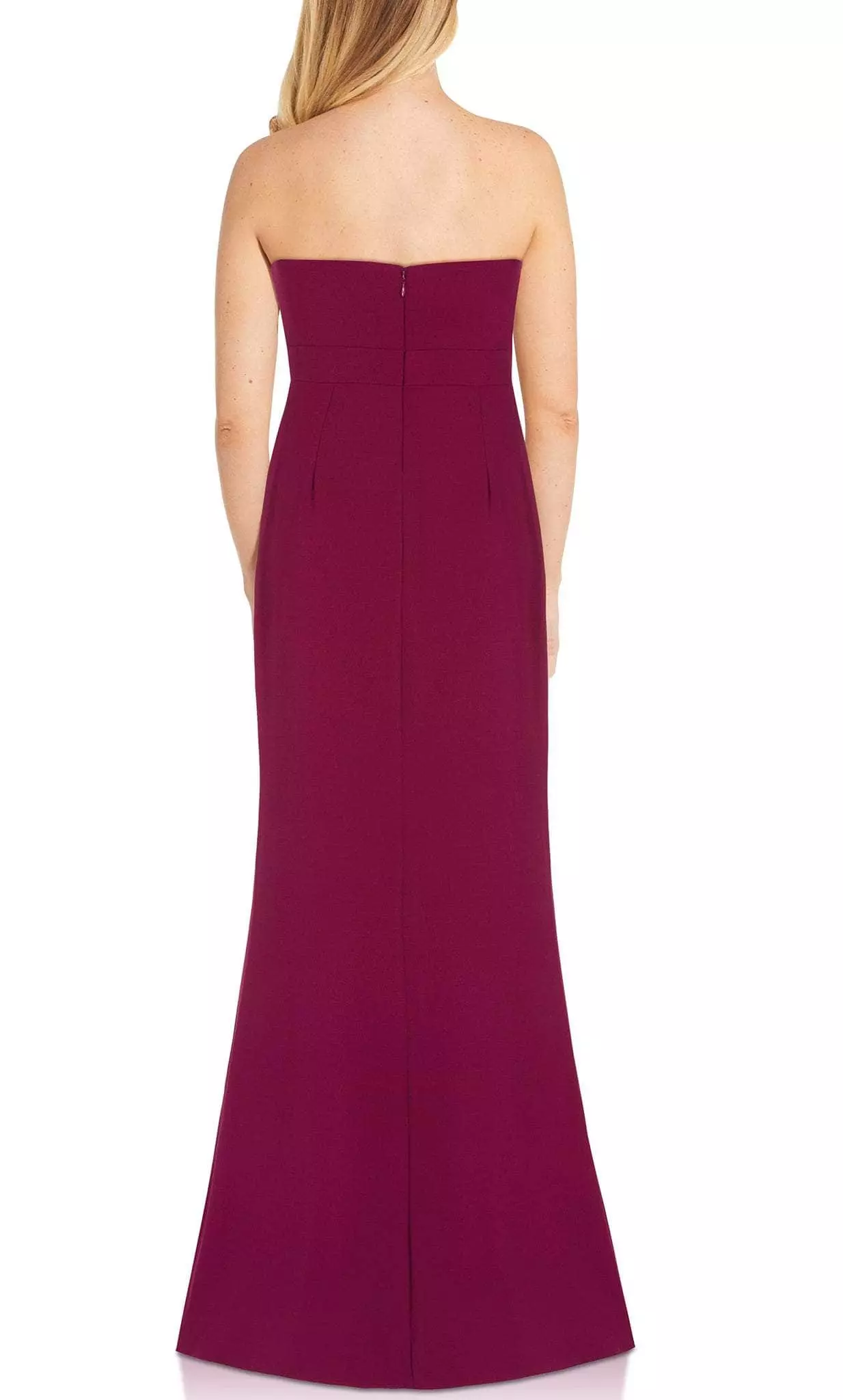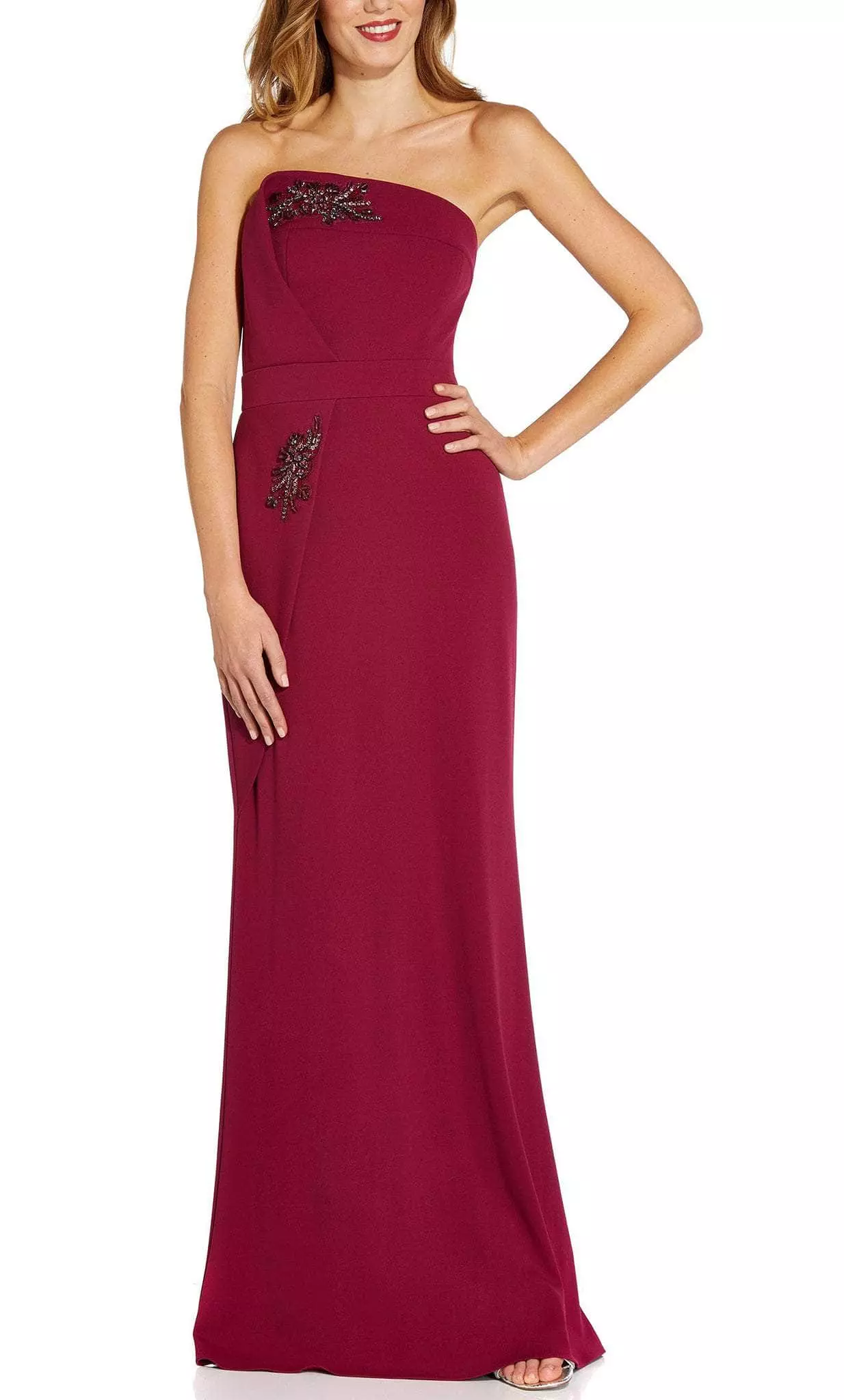 Bring a breathtaking new look to prom night in this stunning Immediate Apparel AP1E207890 special occasion dress. This outfit screams refinement and is ideal for your upcoming red-carpet occasion. P resented with such a fitted bodice and a strapless, straight across neckline. This has a crepe fabric construction and a subtle sequined design accent. Forming a sheath silhouette with a sweep train as it flows gracefully to the ground. This Immediate Apparel AP1E207890 will definitely bring out the goddess in you! Model is wearing Burgandy color.