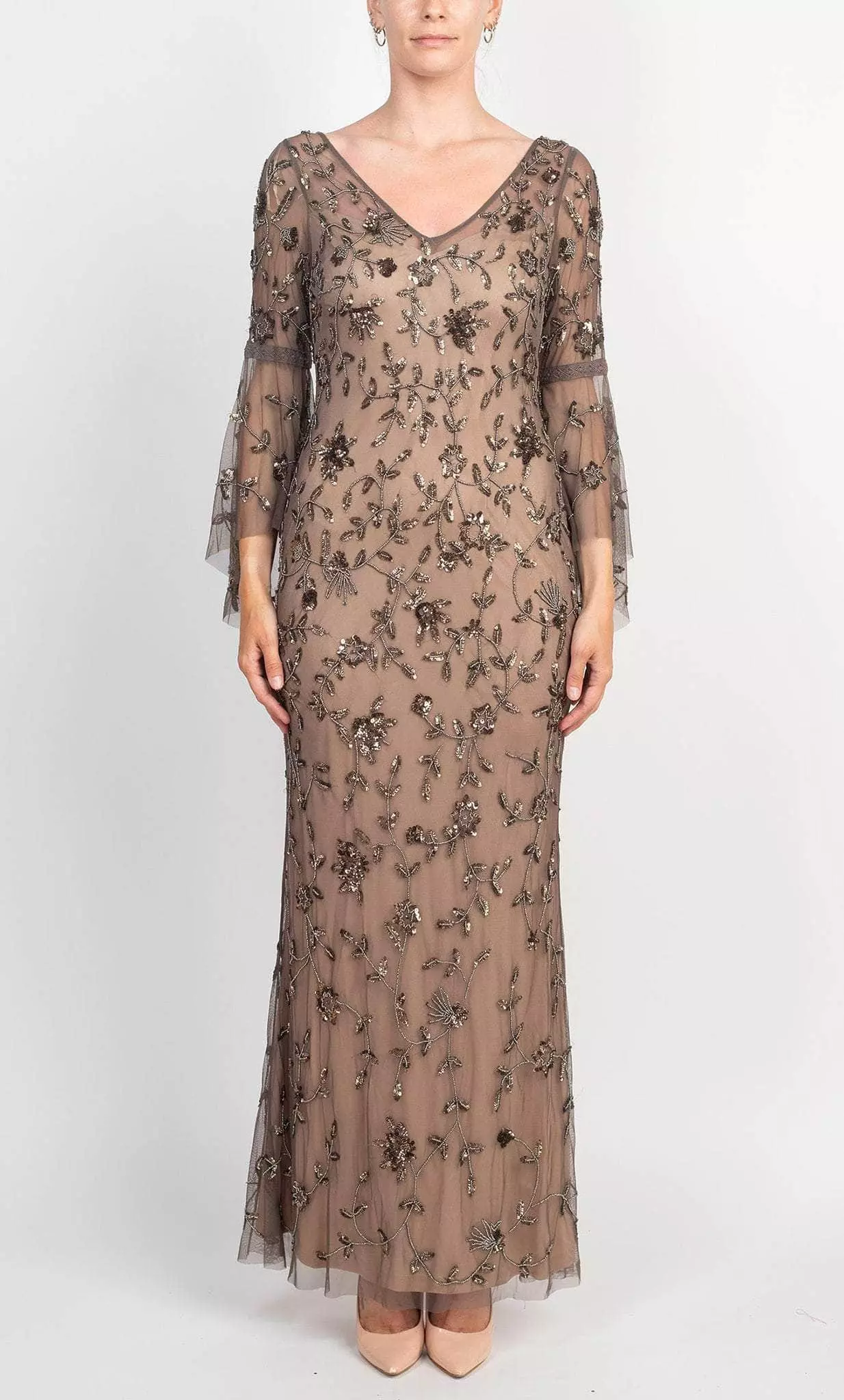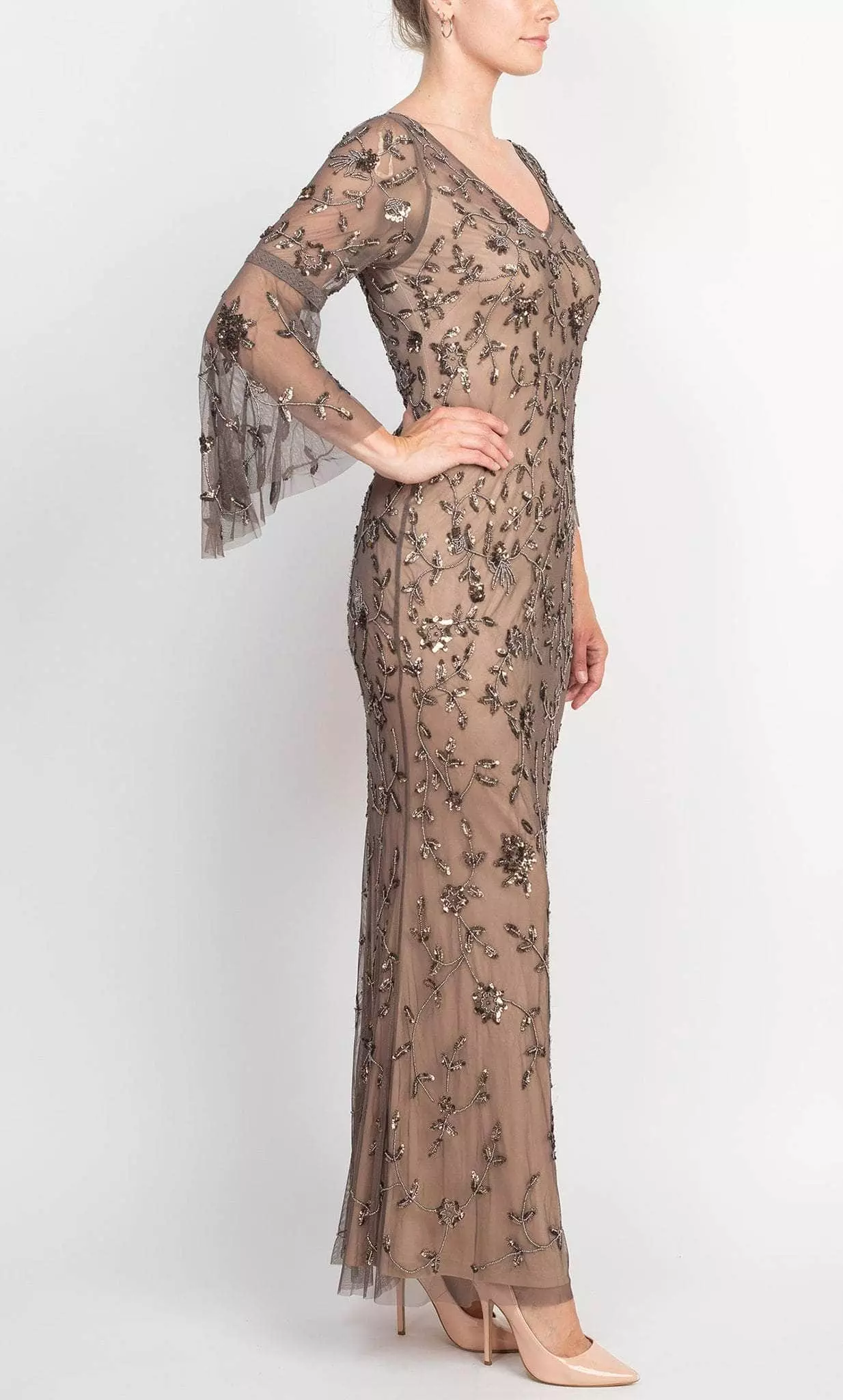 | Details: | Sheer sleeves, Sequins, Beads, Full Length, Back zipper, Formal |
