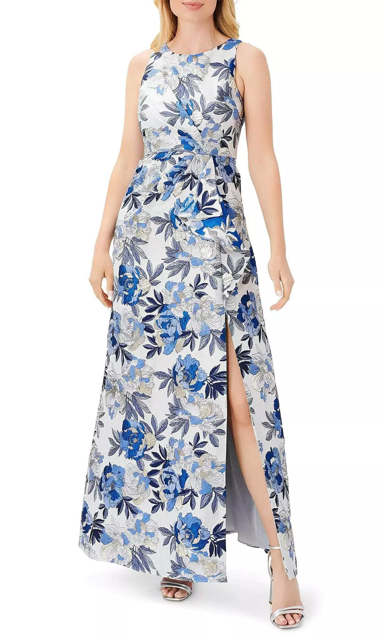 Show up to the party wearing this extremely alluring Adrianna Papell AP1E209731 to capture the attention of the crowd. This fabulous dress flaunts a sleeveless fitted bodice and gathered details at the waistline that add an elegant touch to this ensemble. In addition, it has a full-back with zipper closure. The skirt is full-length hem parades in a sheath silhouette. This Adrianna Papell AP1E209731 is sure to be an attention-grabber on any occasion. Model is wearing Blue Multi color.