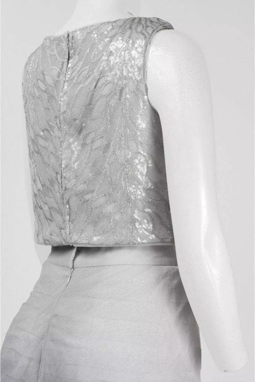 This elegant dress graces in a sleeveless, bateau neckline with bodice lavishly ornate with glittering embellishments. The back has a zipper closure and has a full length sheath skirt. Model is wearing the Silver color.