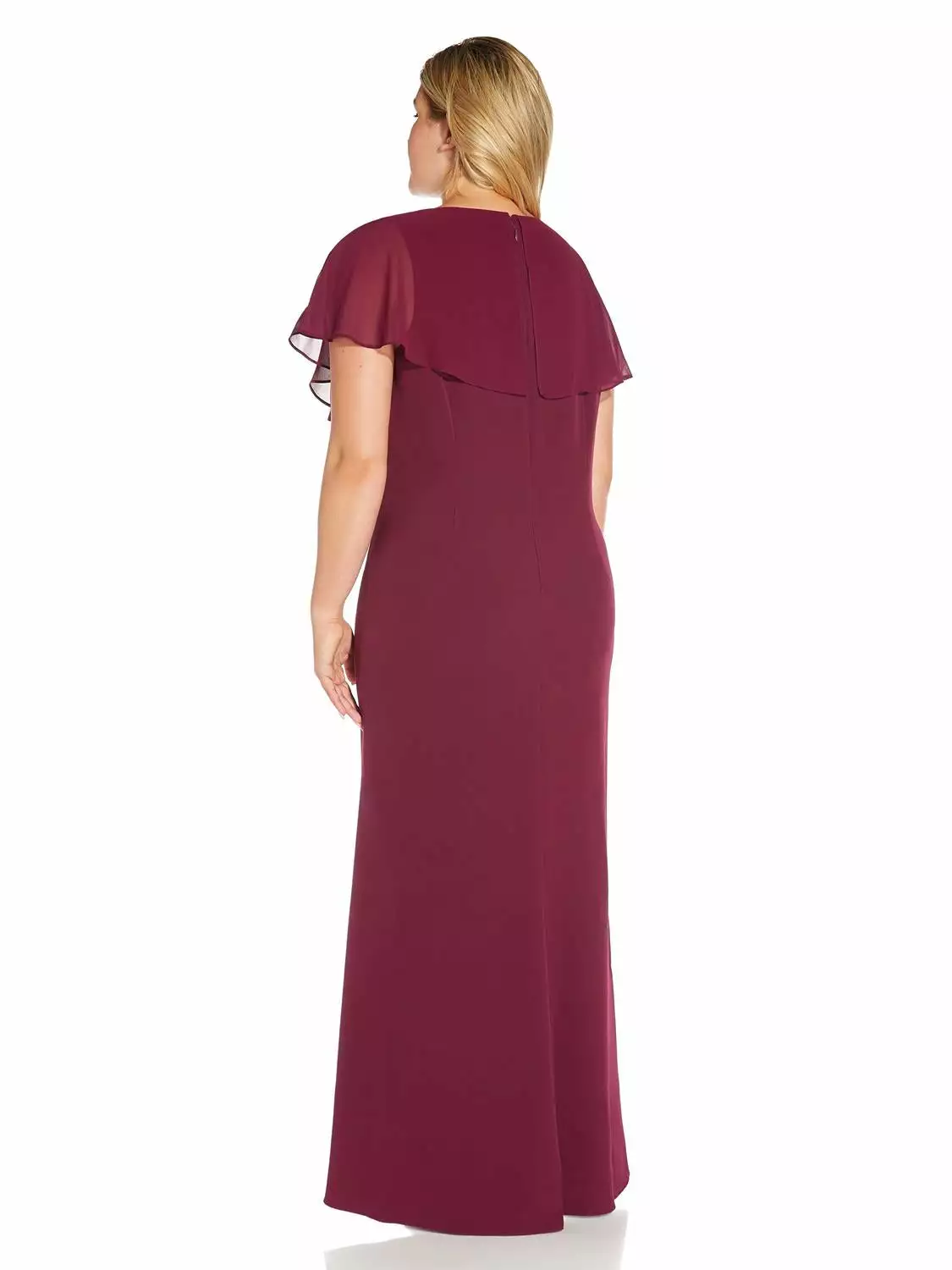 Elegant and so feminine, our crepe gown designed with a feather-light chiffon overlay and soft, cascading skirt. Details We Love: the chic empire waistband and delicate flutter sleeves. This dress is perfect for complimenting your bridal party, from mother of the bride or groom to your bridesmaids.