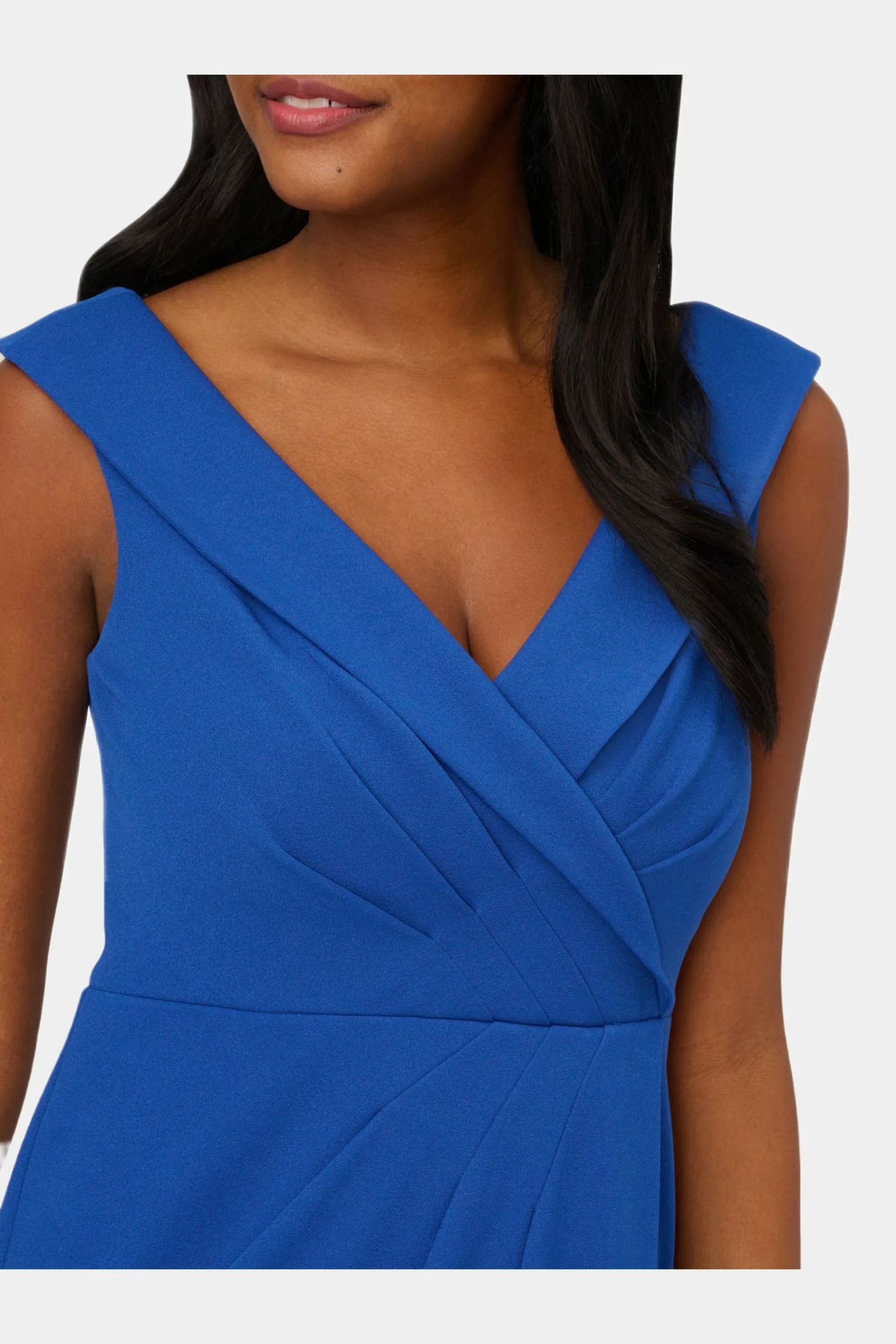 This stunning gown features shawl lapels that frame the surplice neckline and pleats accentuating the waist. Flattering all body types, this dress is perfect for your next event.