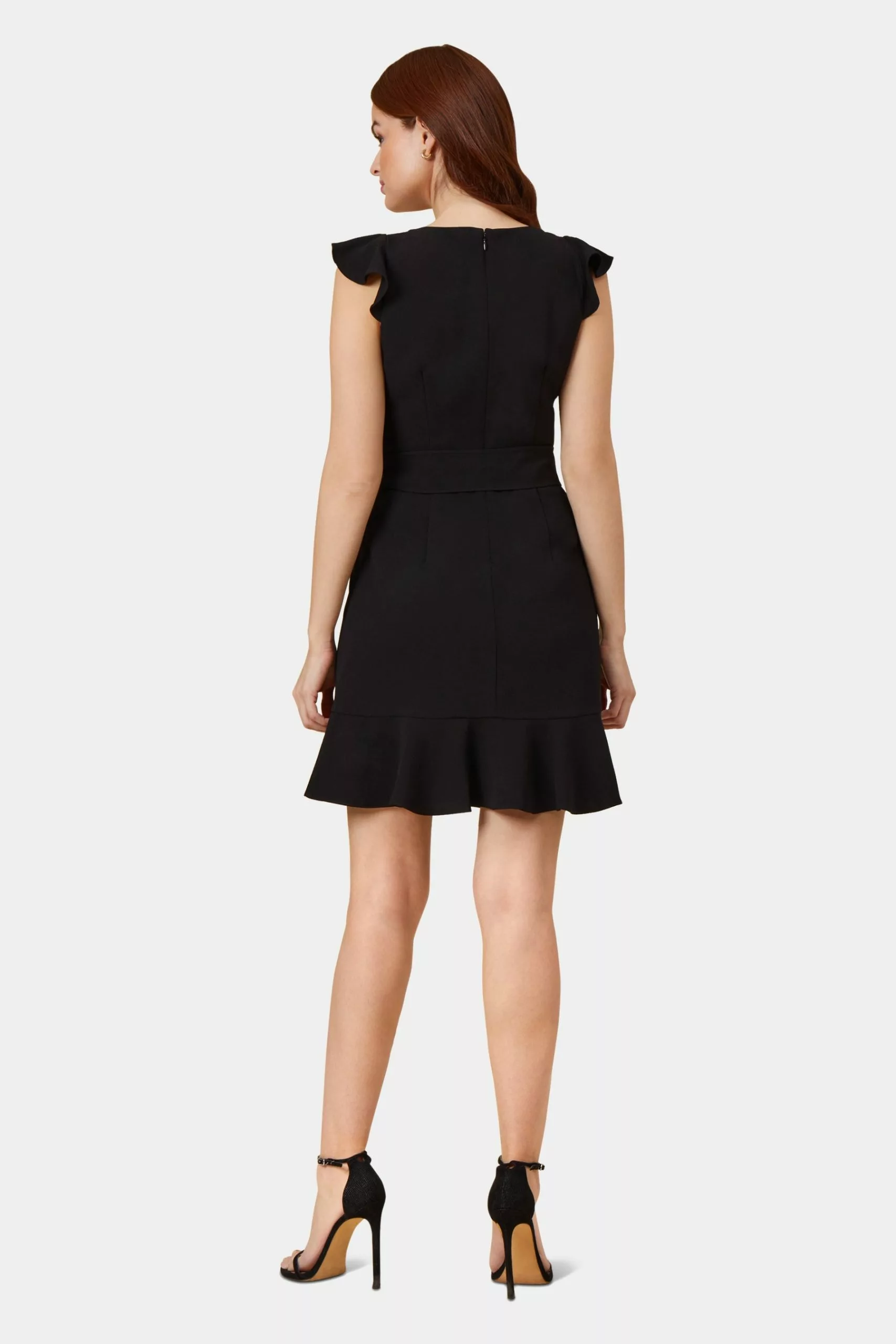 Add a trendy twist to your casual wear collection with this Crepe Flounce Mini Dress. With ruffled hem, waist tie details and capped flutter sleeves, this dress is sure to make you look stylish and comfortable.