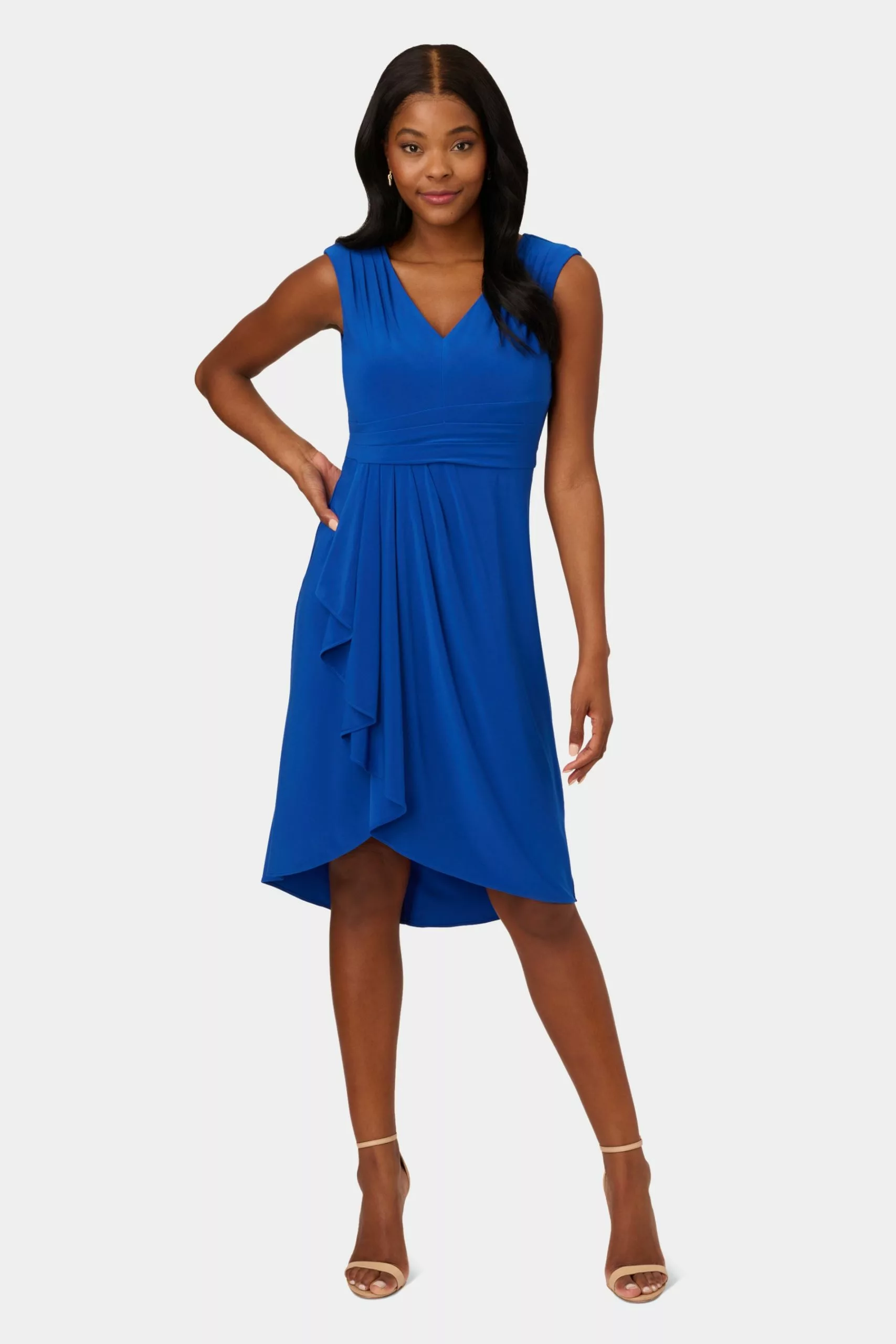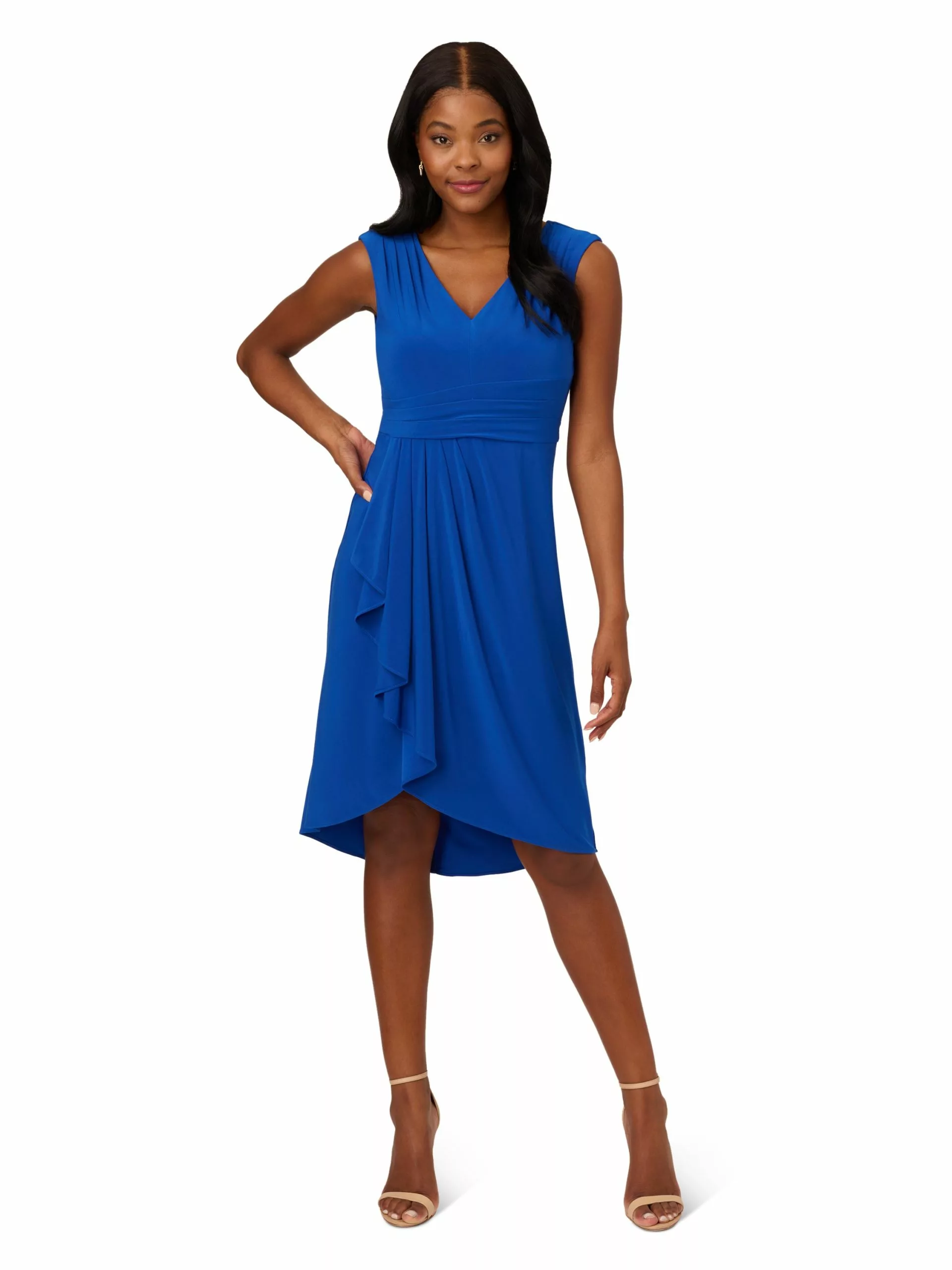 Look simply elegant in this Draped Jersey Asymmetric Dress. Designed with pleated accents and wrap skirt details, this dress can be worn at casual events or brunches.