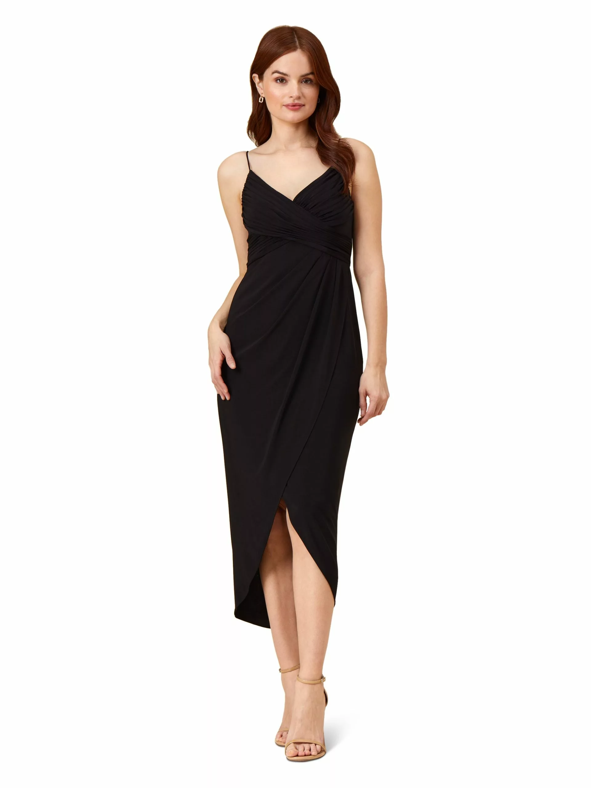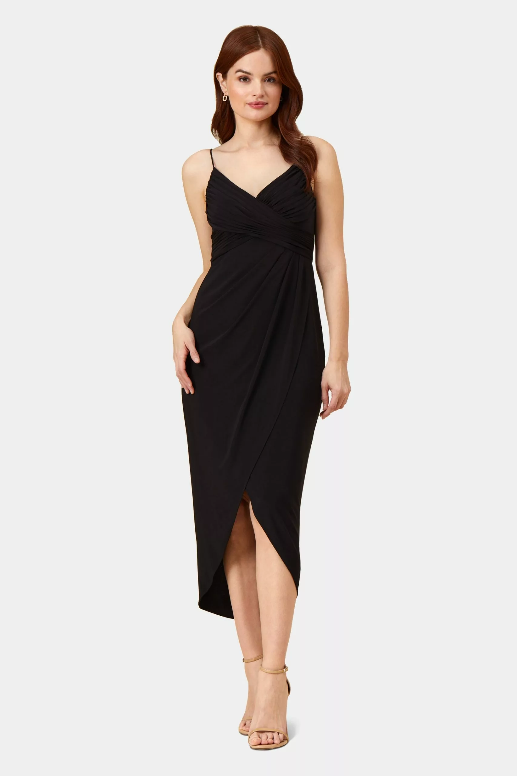 You can never go wrong with a classic beauty like this. With surplice neckline and tulip hemline, this wrap gown is sure to make a statement. Pair it with hoop earrings and strappy heels for a gorgeous date look.