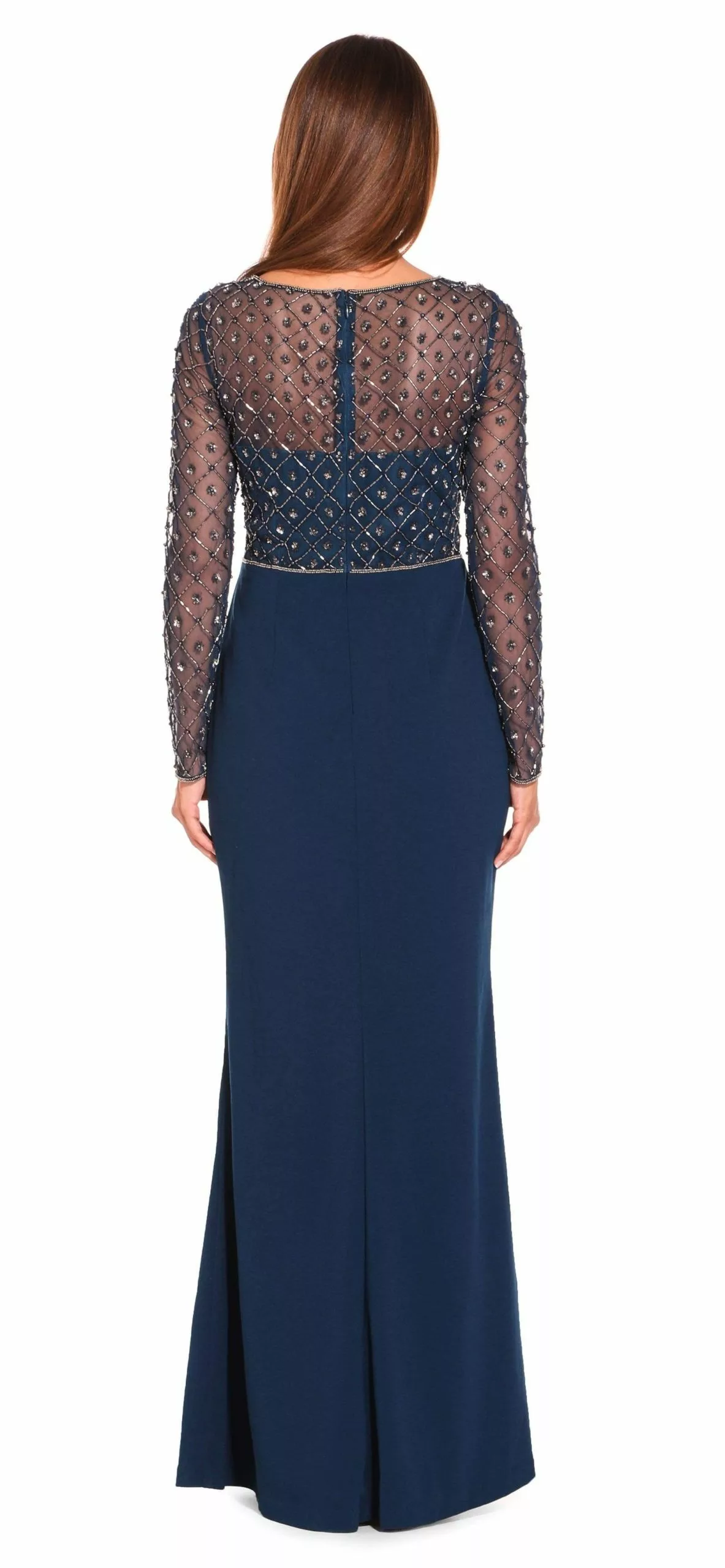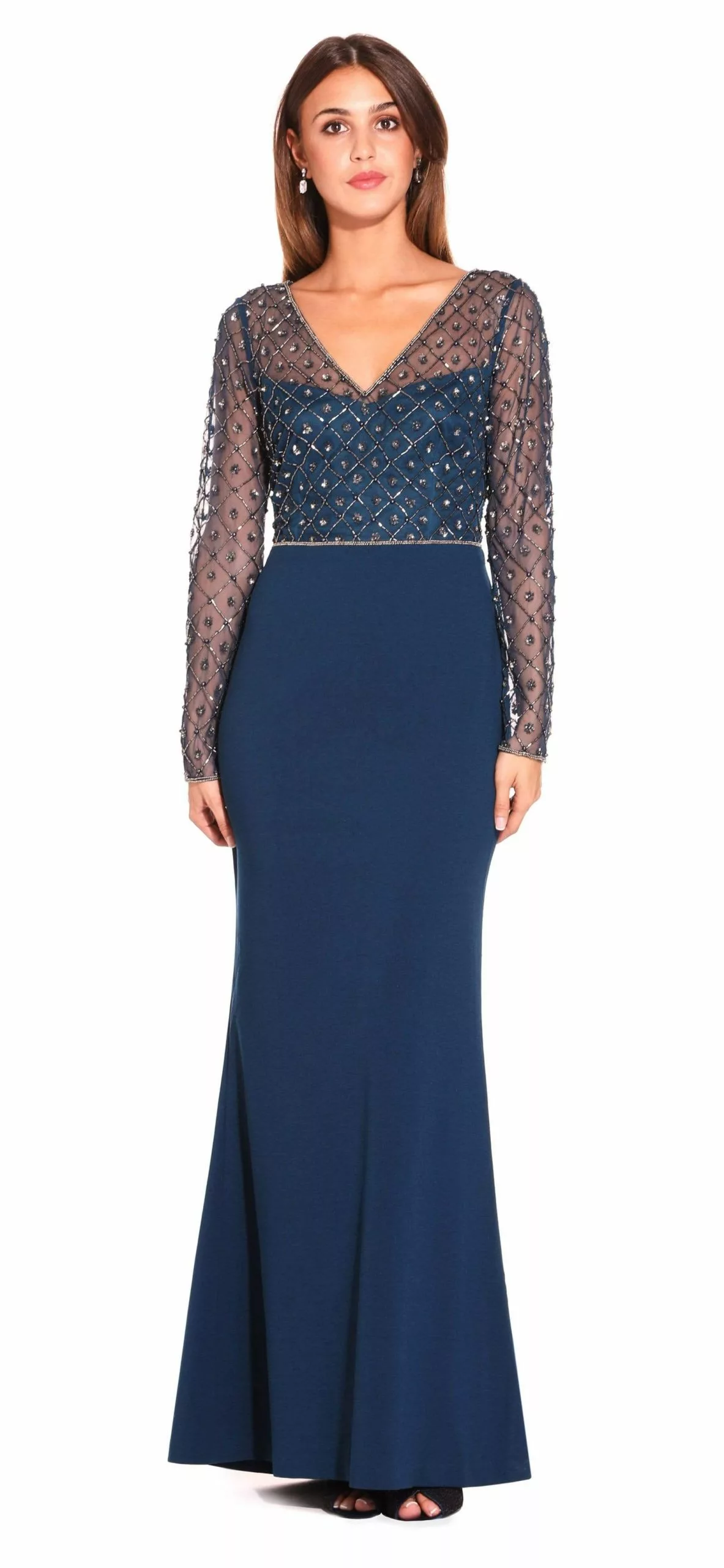 | Details: | Bead and Sequin Embellishments, Sheer Long Sleeves, Fitted, Full Length, Full Back, Back Zipper Closure |