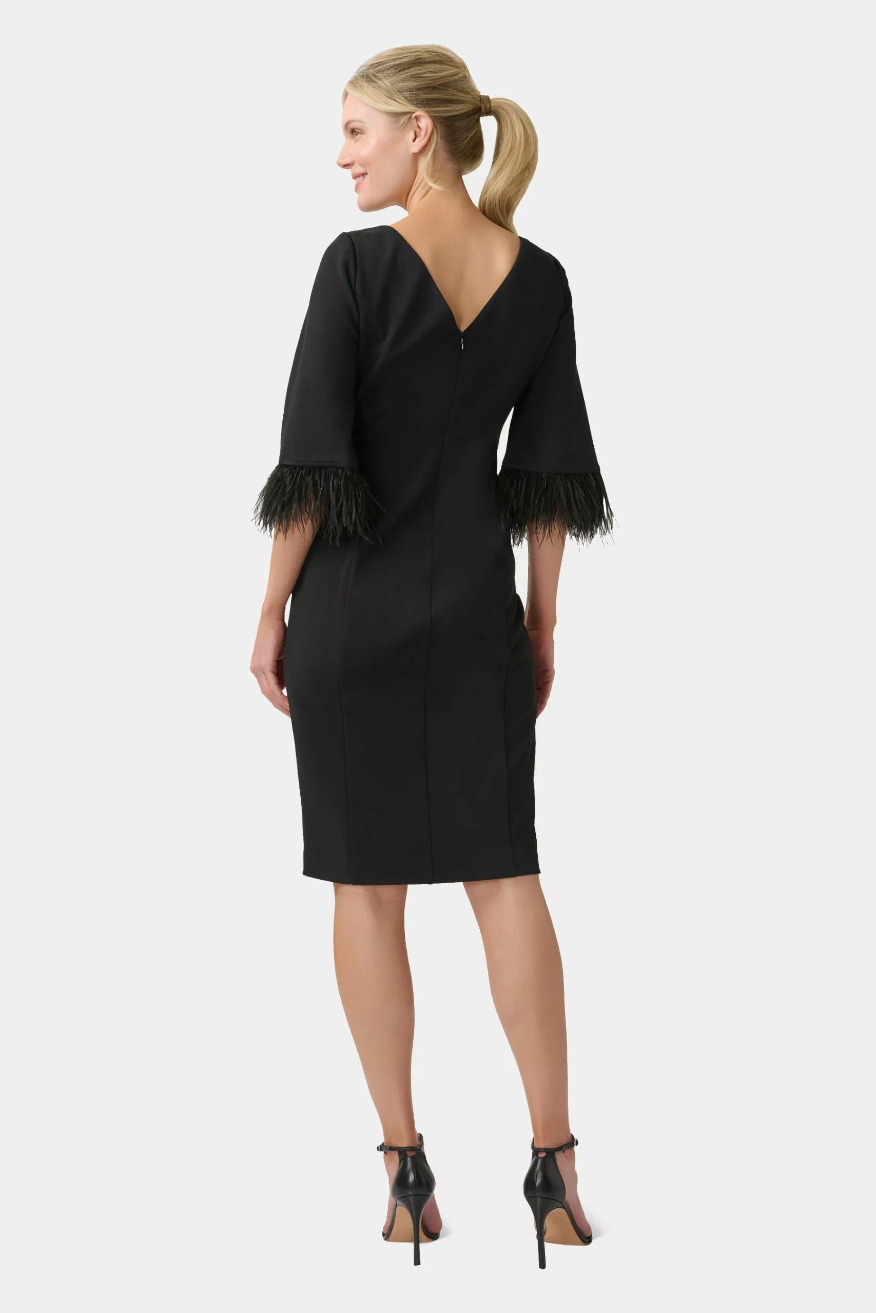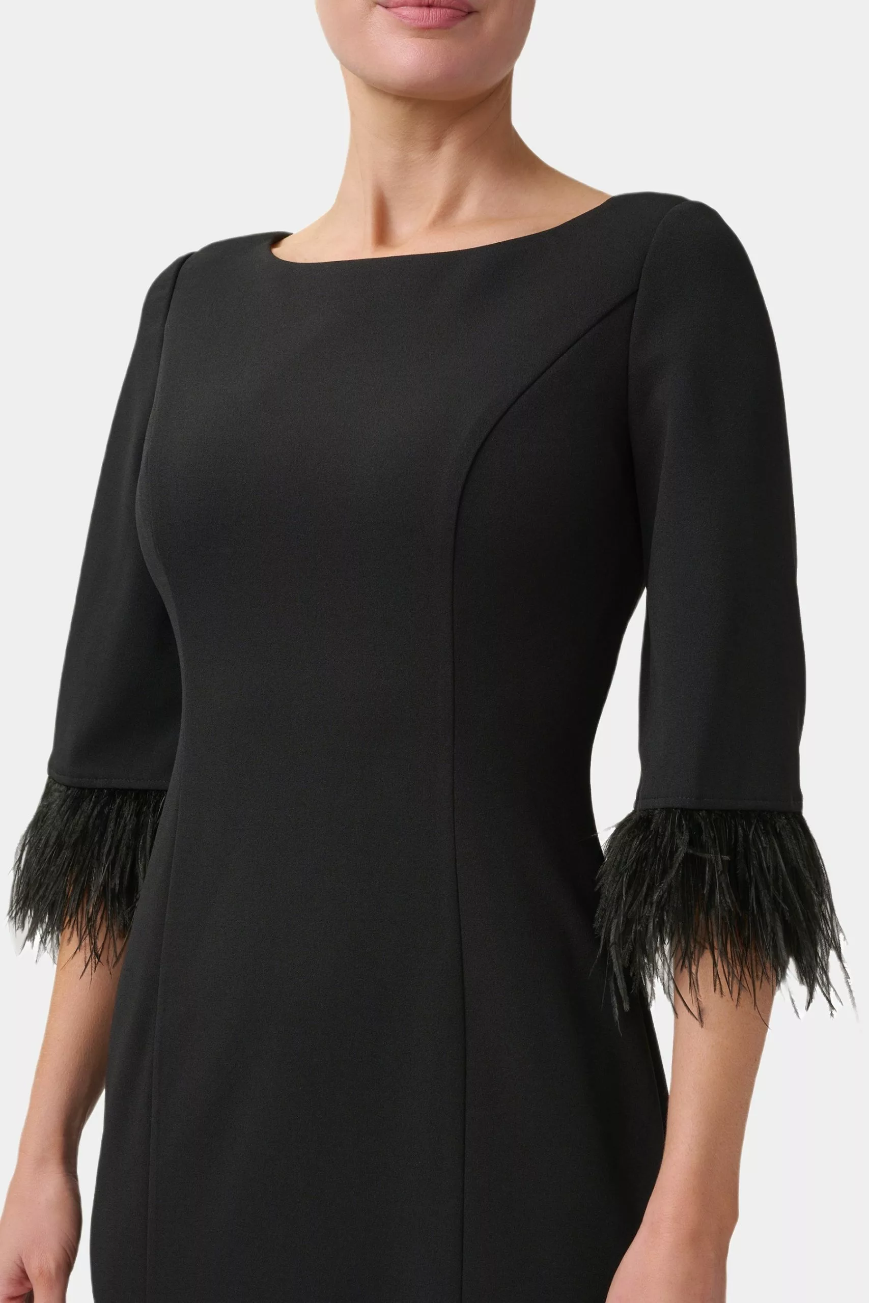 - Feather trimmed sleeves