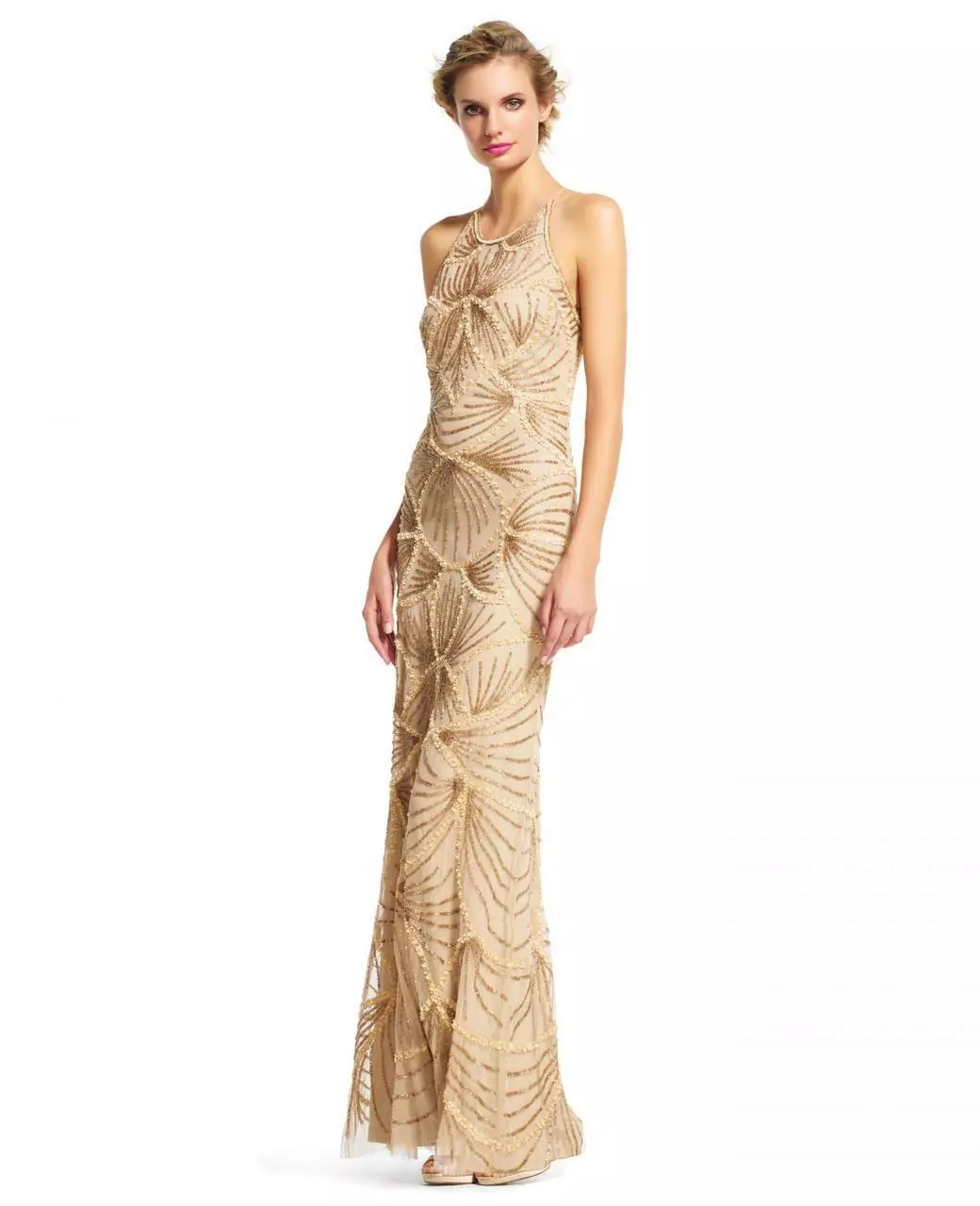 Look outstandingly classy in this Adrianna Papell AP1E200177. This long dress has halter neckline, string back and embellished mesh dress. This Adrianna Papell is sure to make you the darling of the event.