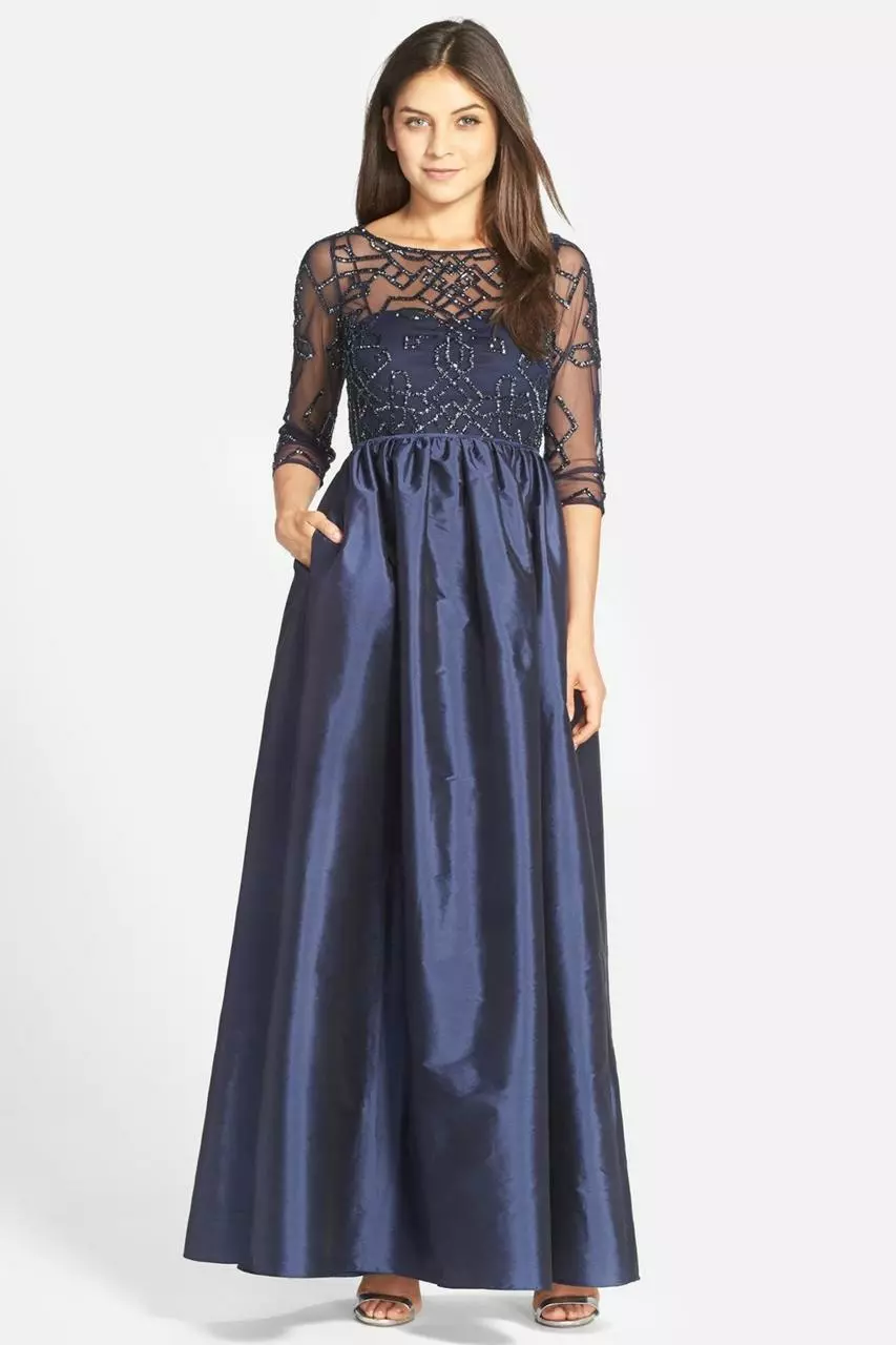 | Details: | Sheer Quarter Sleeves, Beaded Mesh, Illusion Full Back, Full-Length |