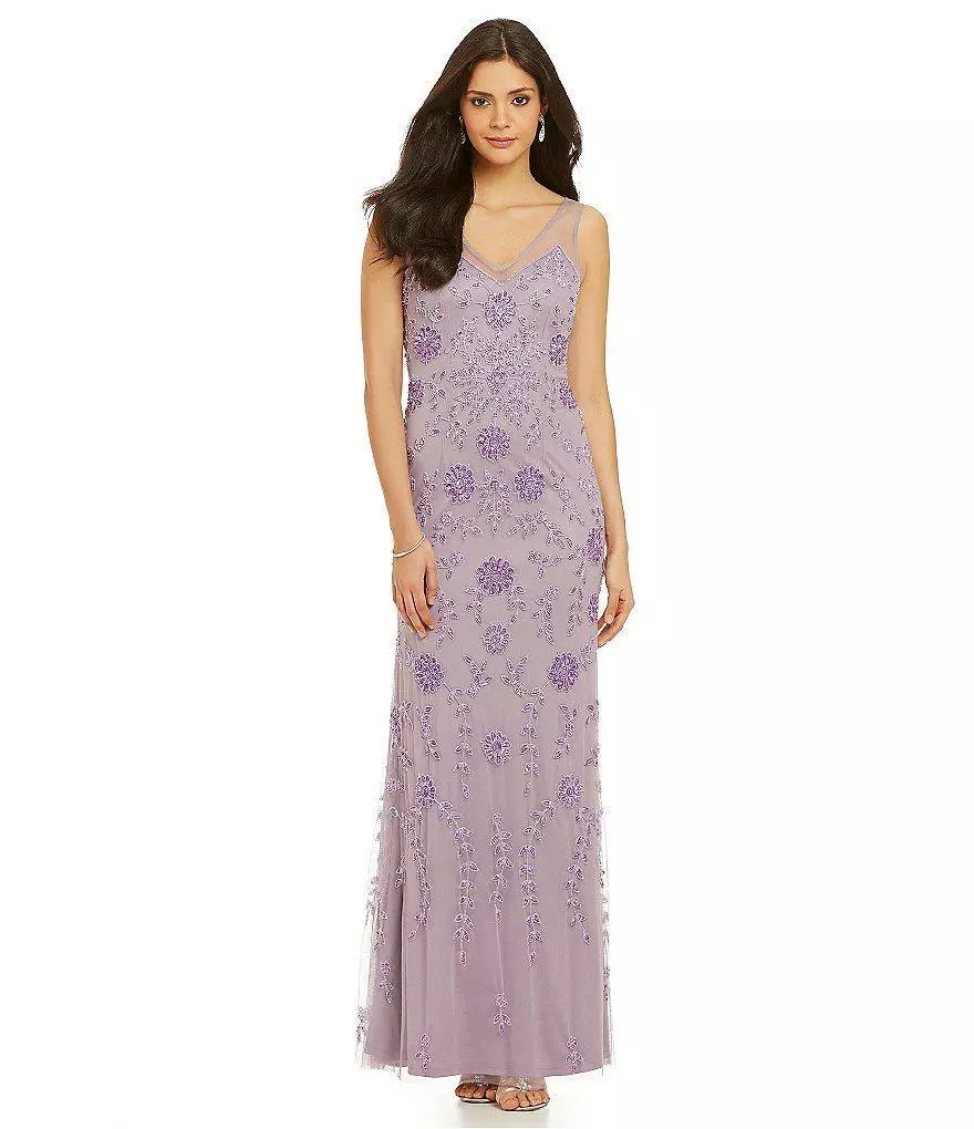 Radiate with beauty in a beaming gown from Adrianna Papell 091884420. This mature style showcases a sleeveless, illusion v-neckline, sequin floral pattern, and v-shaped back. The lovely floating skirt dances to the floor with striping sequins and a sheer overlay for a dramatic look. This Adrianna Papell creation will definitely make you feel special!
