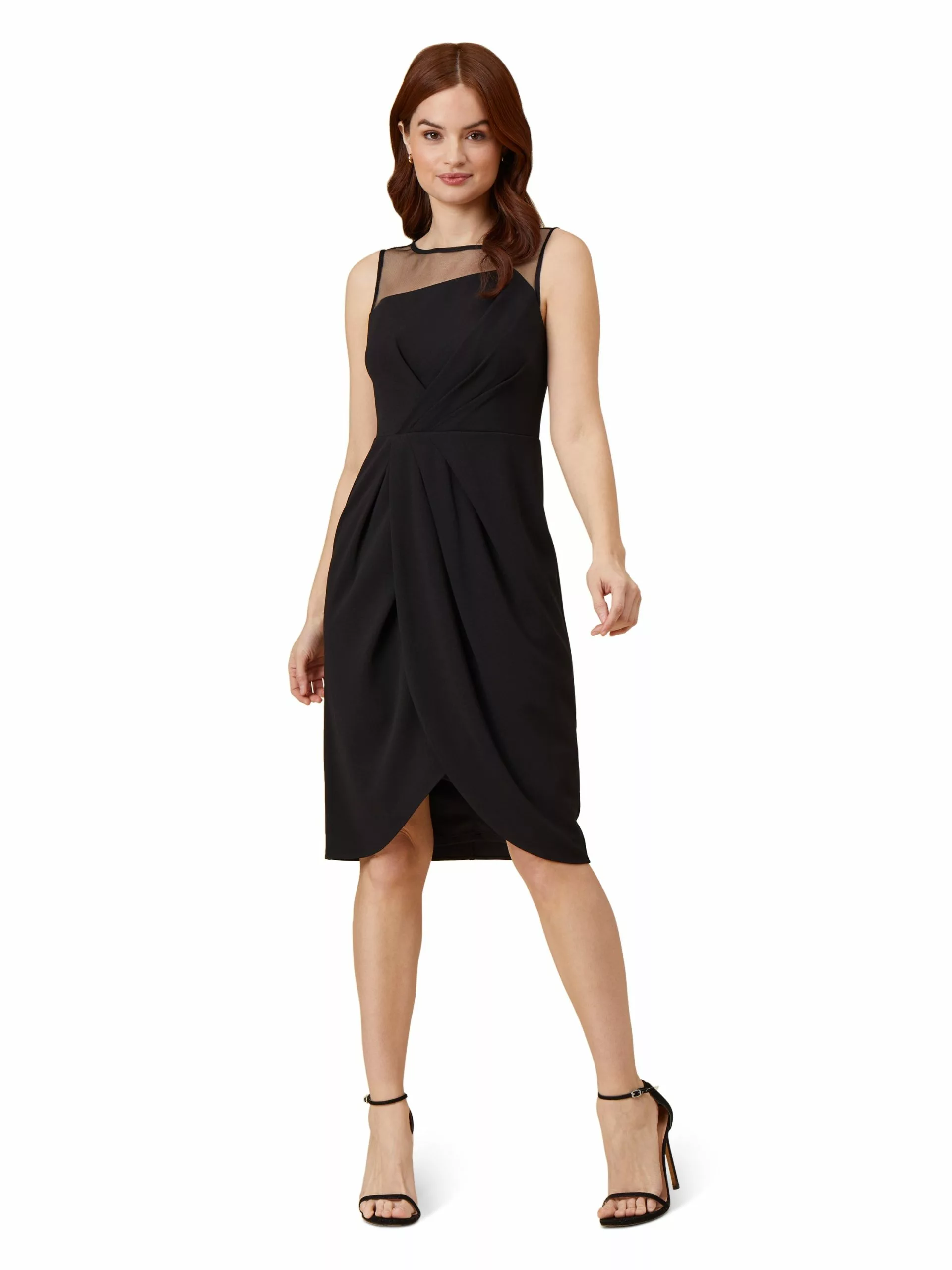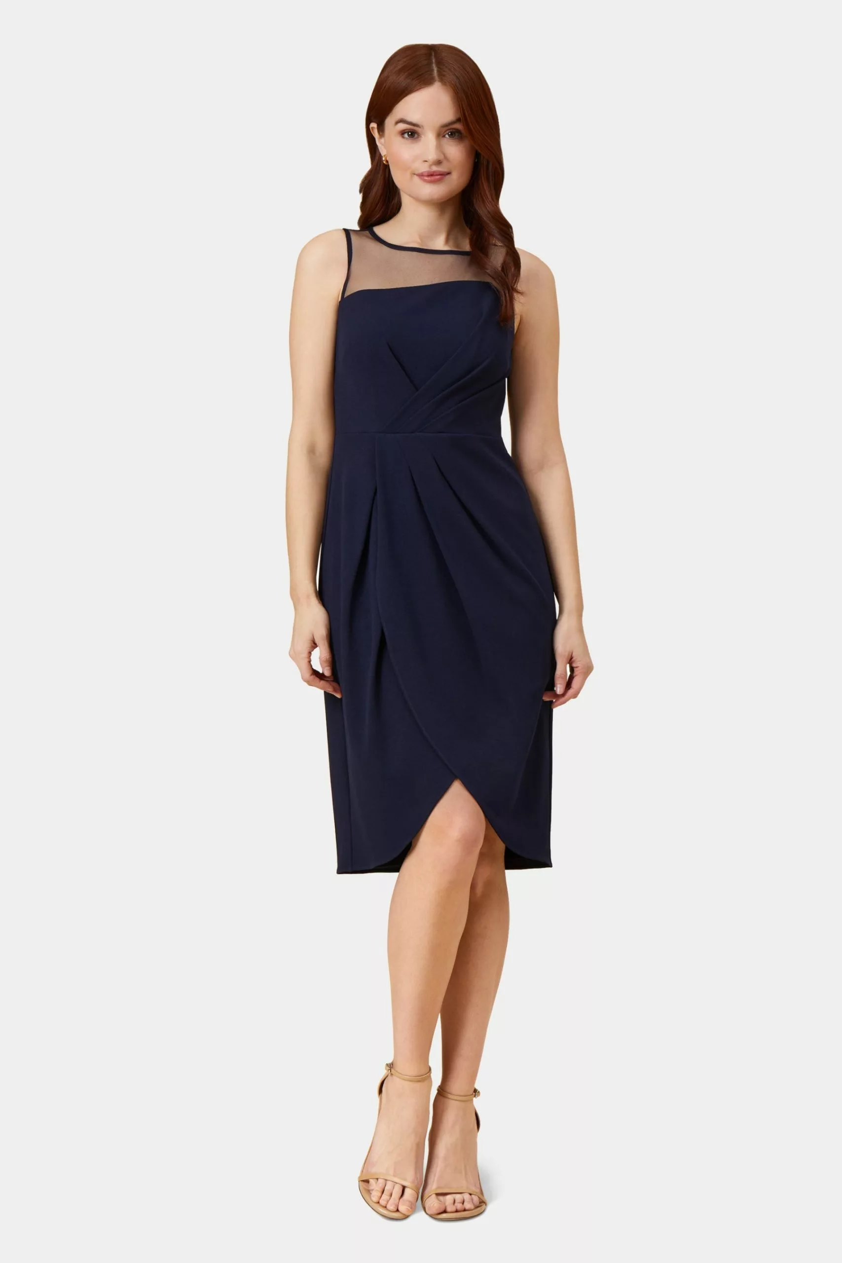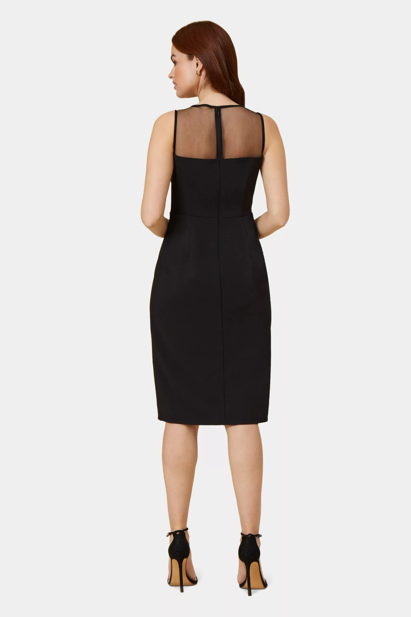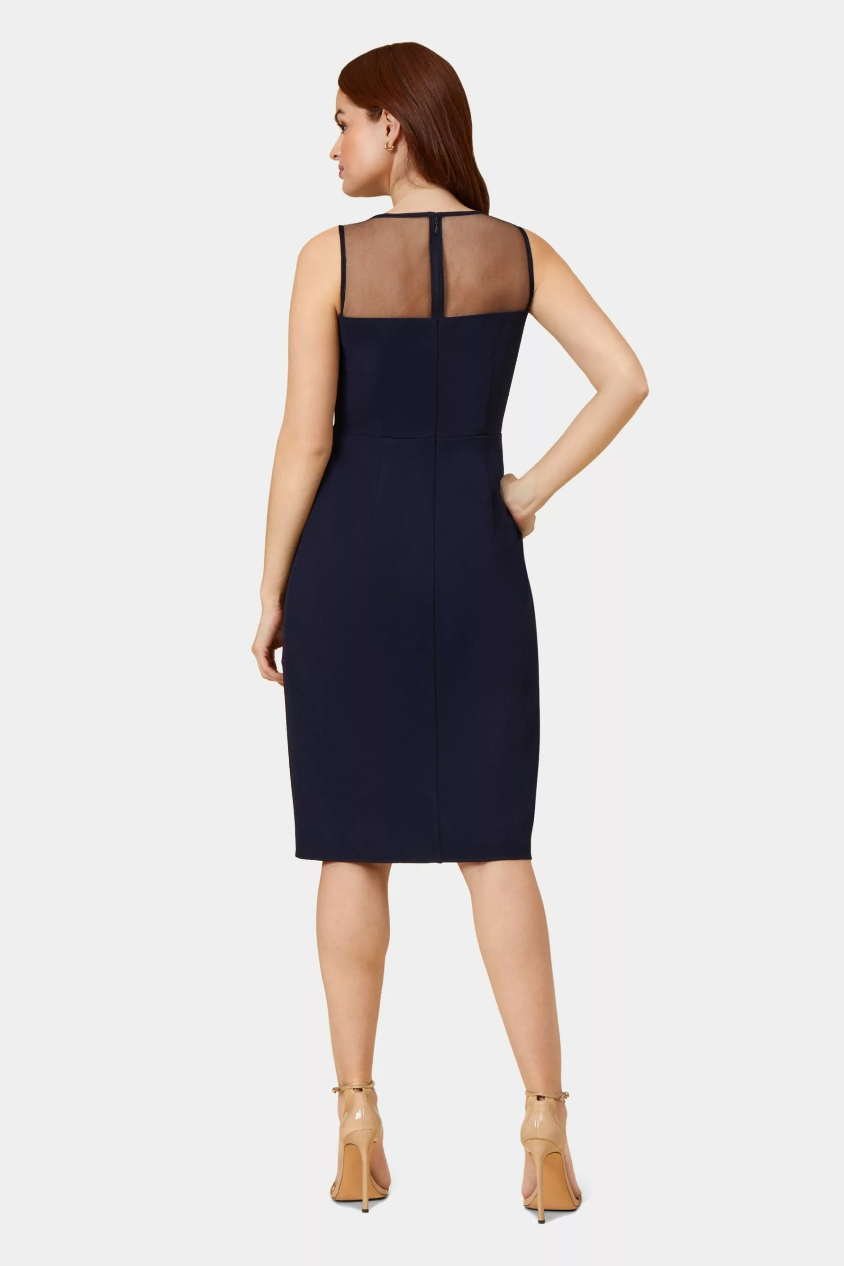 Amp up your casual look in this Illusion Yoke Sheath Dress. The illusion yoke, elegant drape details and sleeveless design accentuates the overall look of the dress, making it a perfect pick for casual events or dinners.