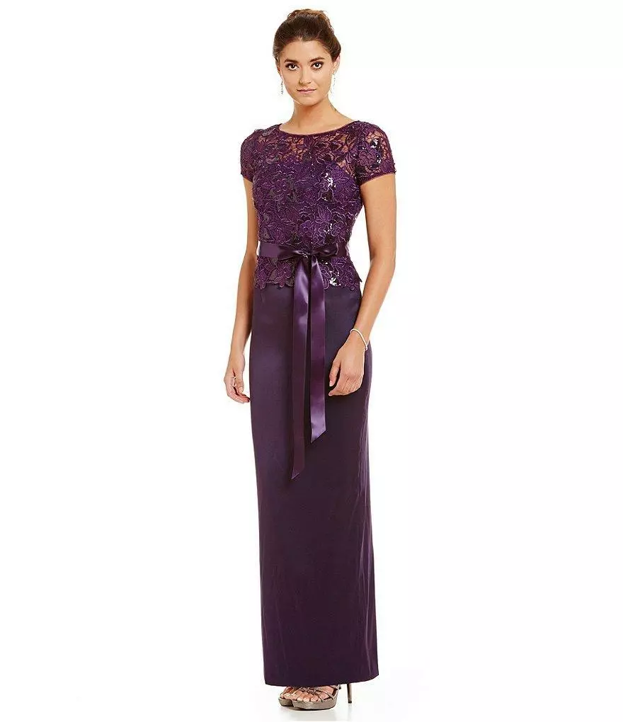 Look lovely and stylish in this Adrianna Papell 081929760. This dress has bateau neckline, short sleeves, keyhole back, lace bodice, back has slit and zipper. Make it your night worth recalling in this Adrianna Papell creation.