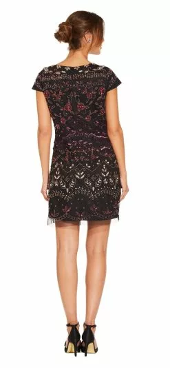| Details: | Sleeveless, Floral pattern, Sequins, Faux wrap, Open V back, Back zipper, Back slit |