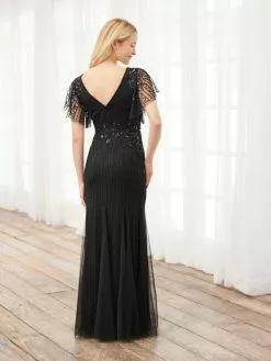 Adrianna Papell Platinum 40401 Flutter Sleeve Beaded Gown