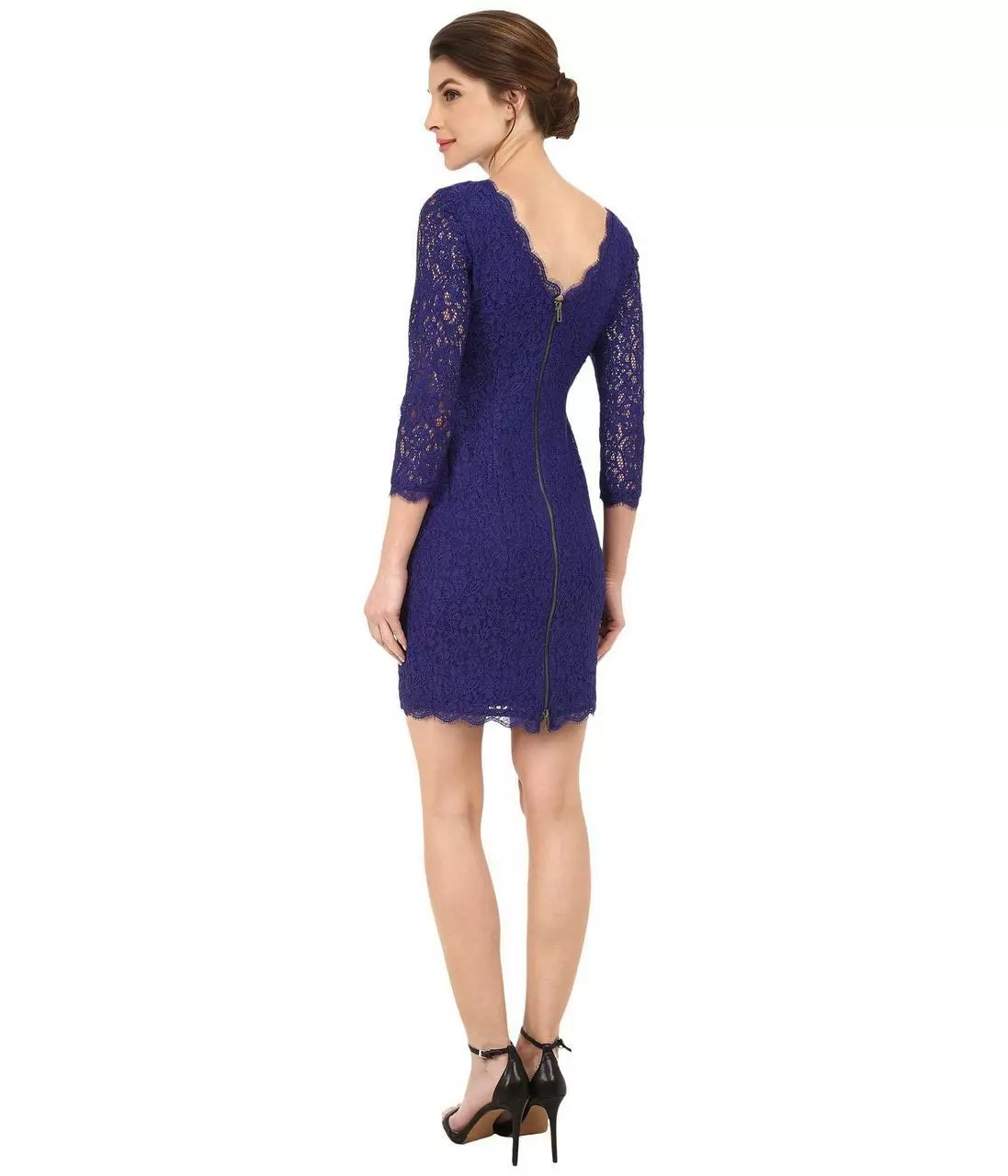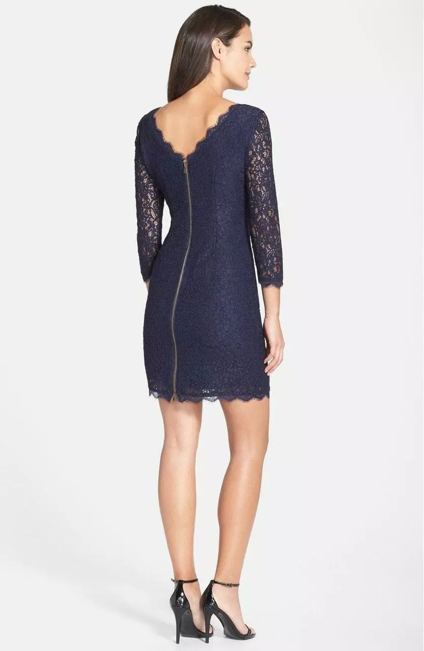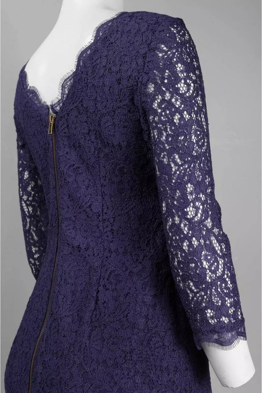 | Details: | Quarter Sleeves, V-Shaped Open Back, Back Zipper, Lace, Scalloped Short Hem |