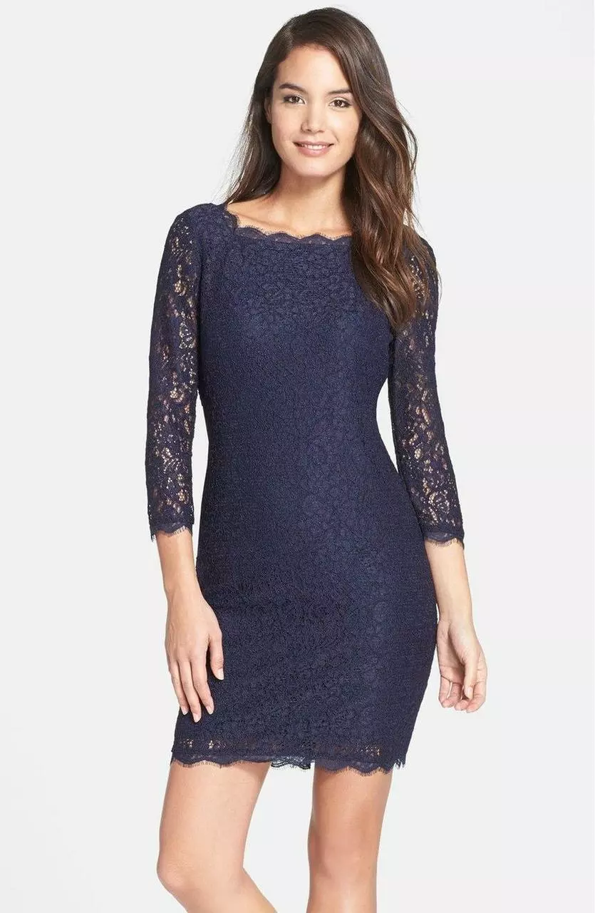 Be the embodiment of understated sophistication in this stunning lace Adrianna Papell 41864782 creation. Wrapped in a delicate floral lace fabric, this gorgeous piece flaunts a scalloped bateau neckline with eyelash fringes, sheer quarter sleeves and a v-cut back with a zipper closure. Exquisitely flowing from the waist, the sheath skirt goes down to a scalloped short hem. Create a stylish persona in this striking Adrianna Papell masterpiece.