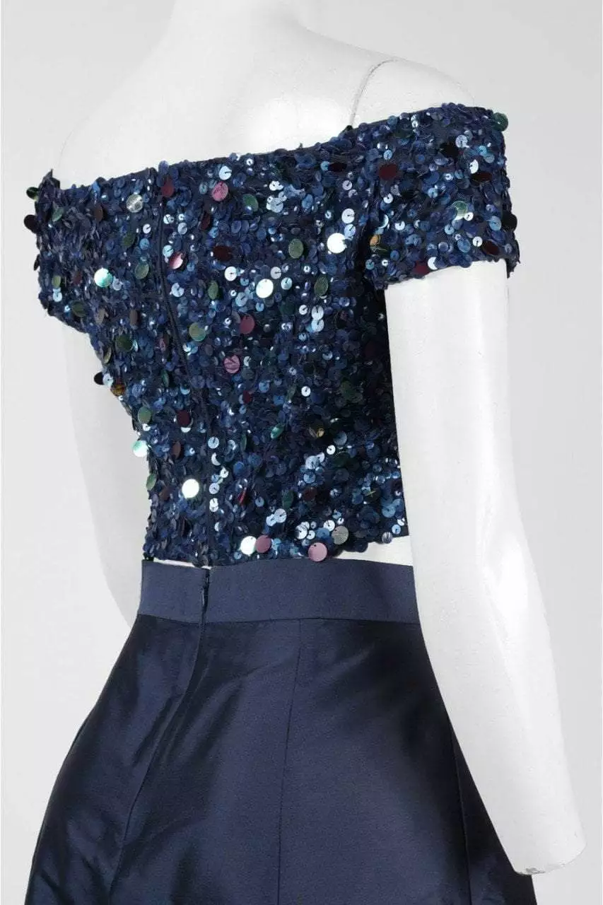 | Details: | Two-Piece, Sequins, Back Zipper Closure, Box-Pleats, Mid-Open Back, High-Low Hem |