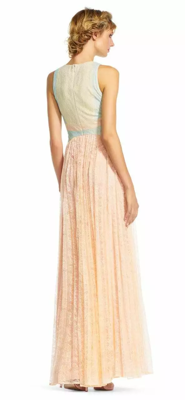 | Details: | Colorblock, Sleeveless, Pleated, Zipper back, Lace (100% Nylon) Lining (100% Acetate) |