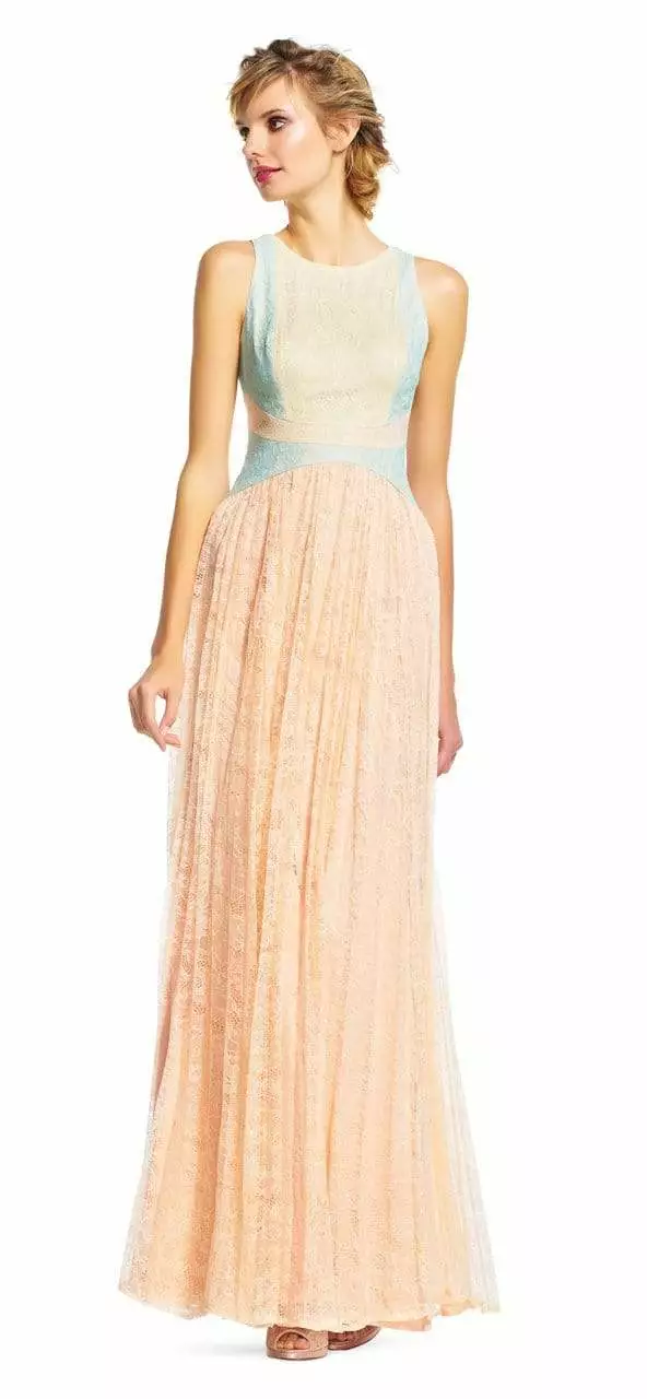 Portray the rich variety in design of this dress by Adrianna Papell AP1E200930. This dress features a sleeveless, jewel neckline. This striking colorblocked dress will sure to make a statement in your next formal party. This Adrianna Papell creation will absolutely make you feel special!