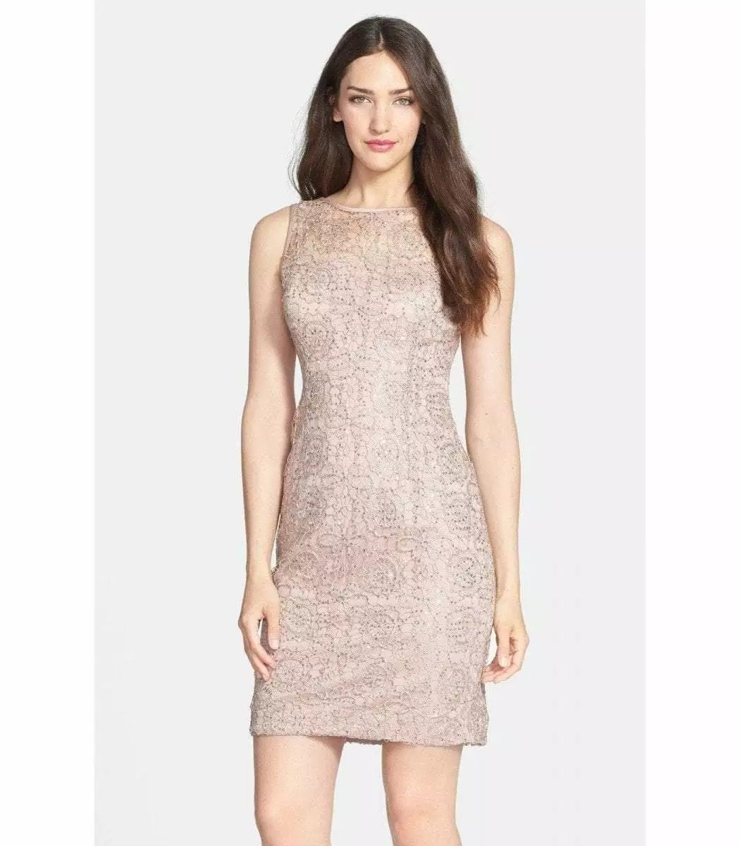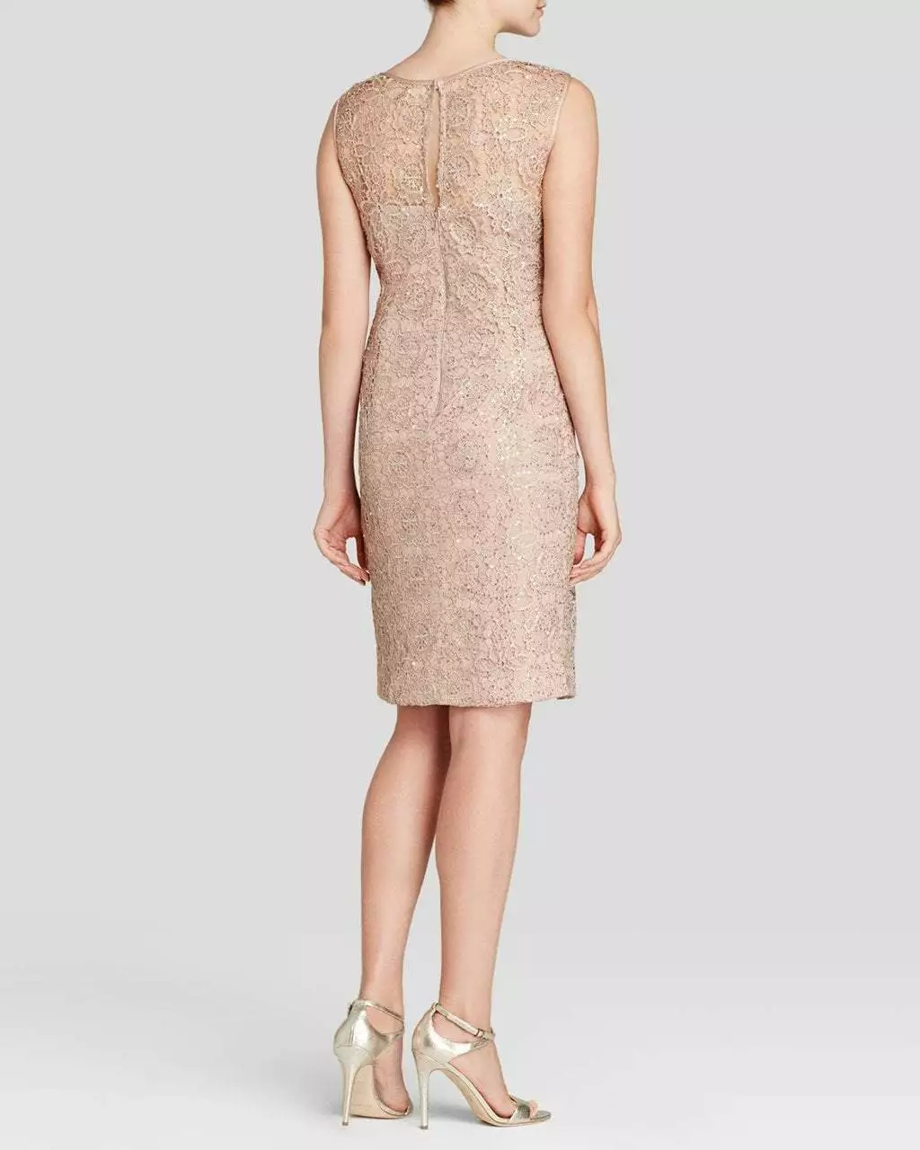 | Details: | Sleeveless, Lace and sequin overlay, Back keyhole, Lined, Knee length, Back zipper |