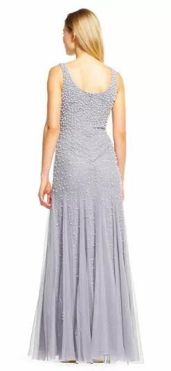 Adrianna Papell – AP1E200672 Pearl Beaded Dress With Godet Skirt