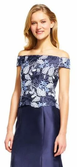 Adrianna Papell – AP1E201247 Off Shoulder Guipure Lace Mikado Gown