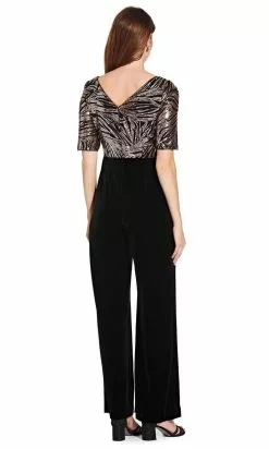 Adrianna Papell – Sequined V Neck Jumpsuit AP1E206295 – 1 Pc Black Rosegold In Size 2 Available