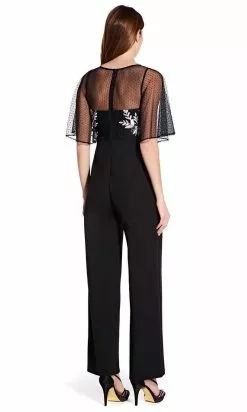 Adrianna Papell – Sheer Overlay Embroidered Jumpsuit AP1E205755 – 1 Pc Black Ivory In Size 20 Available