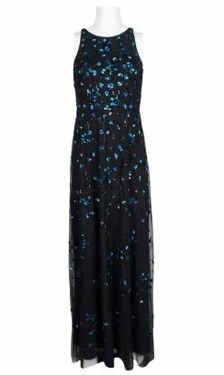 Adrianna Papell – AP1E205920 Sequined Floral Bateau Neck Mesh Dress