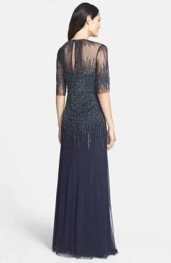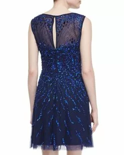 Adrianna Papell – 54465630 Illusion Jewel Sequined Mesh Cocktail Dress