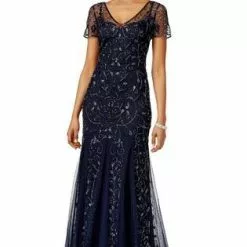 Adrianna Papell – 41926810 Cap Sleeve Rivulet Beaded Sheath Dress
