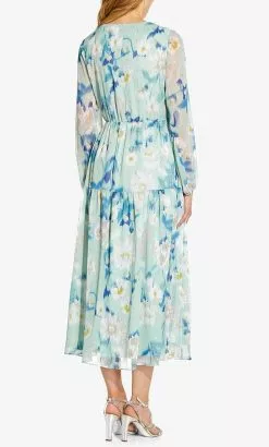 Adrianna Papell AP1D104268 – Long Sleeve Split Neck Knee-Length Dress