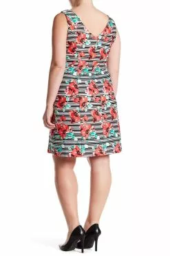 Adrianna Papell – AP1D100873 Floral Striped Sheath Cocktail Dress